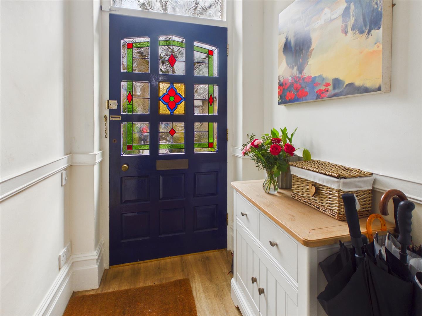 Entrance Hallway - 6.25m x 1.80m (20'6 x 5'11") - Cornicing to ceiling. Radiator. Wood effect vinyl flooring. Stairs to first floor.