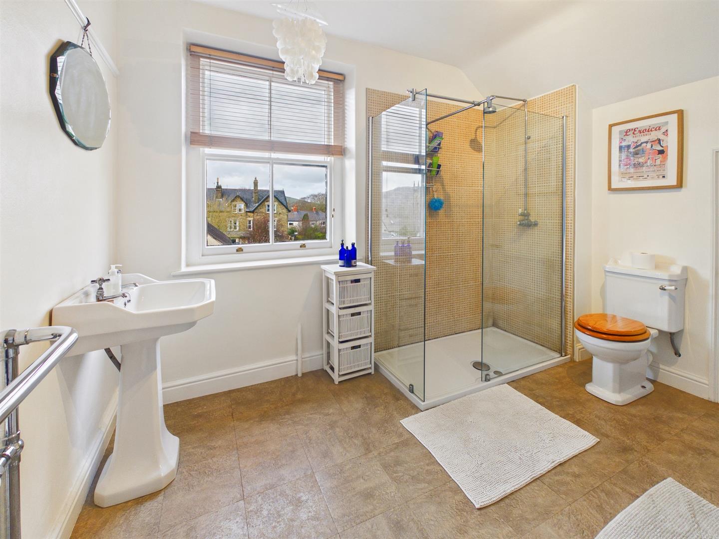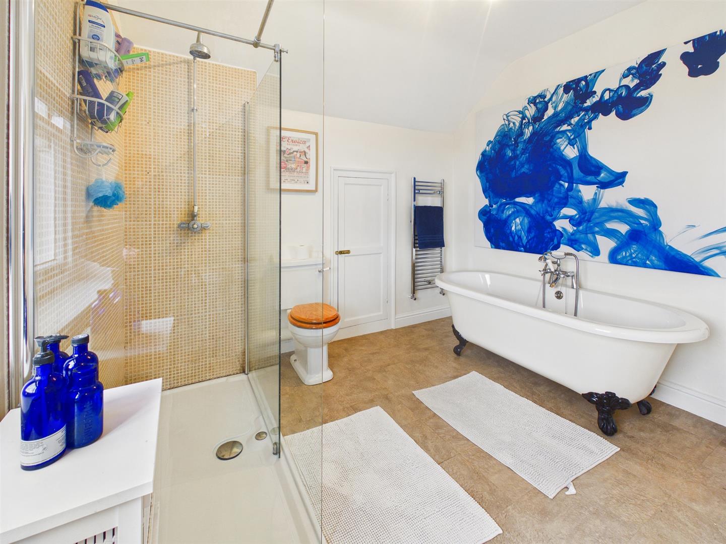 Bathroom Two - 3.35m x 3.00m (11'0" x 9'10") - Window to rear with far reaching views of Buxton and surrounding rolling countryside. Low level W.C . Pedestal wash basin. Clawfoot roll top bath. Separate double shower enclosure. Eaves cupboard housing combination boiler. Towel rail and radiator. Karndean flooring.