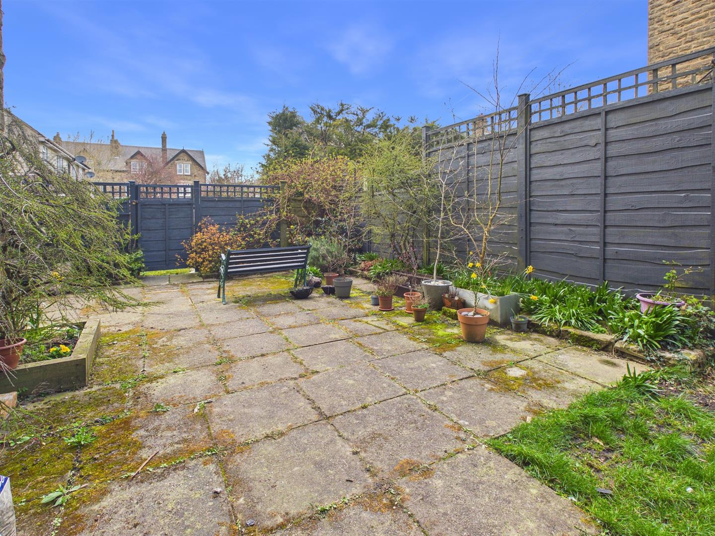 Garden - Patio area. Storage shed. Gate to rear leading to access road with potential to make off road parking. Lawned area with flower borders to the side of the house enclosed by fencing.