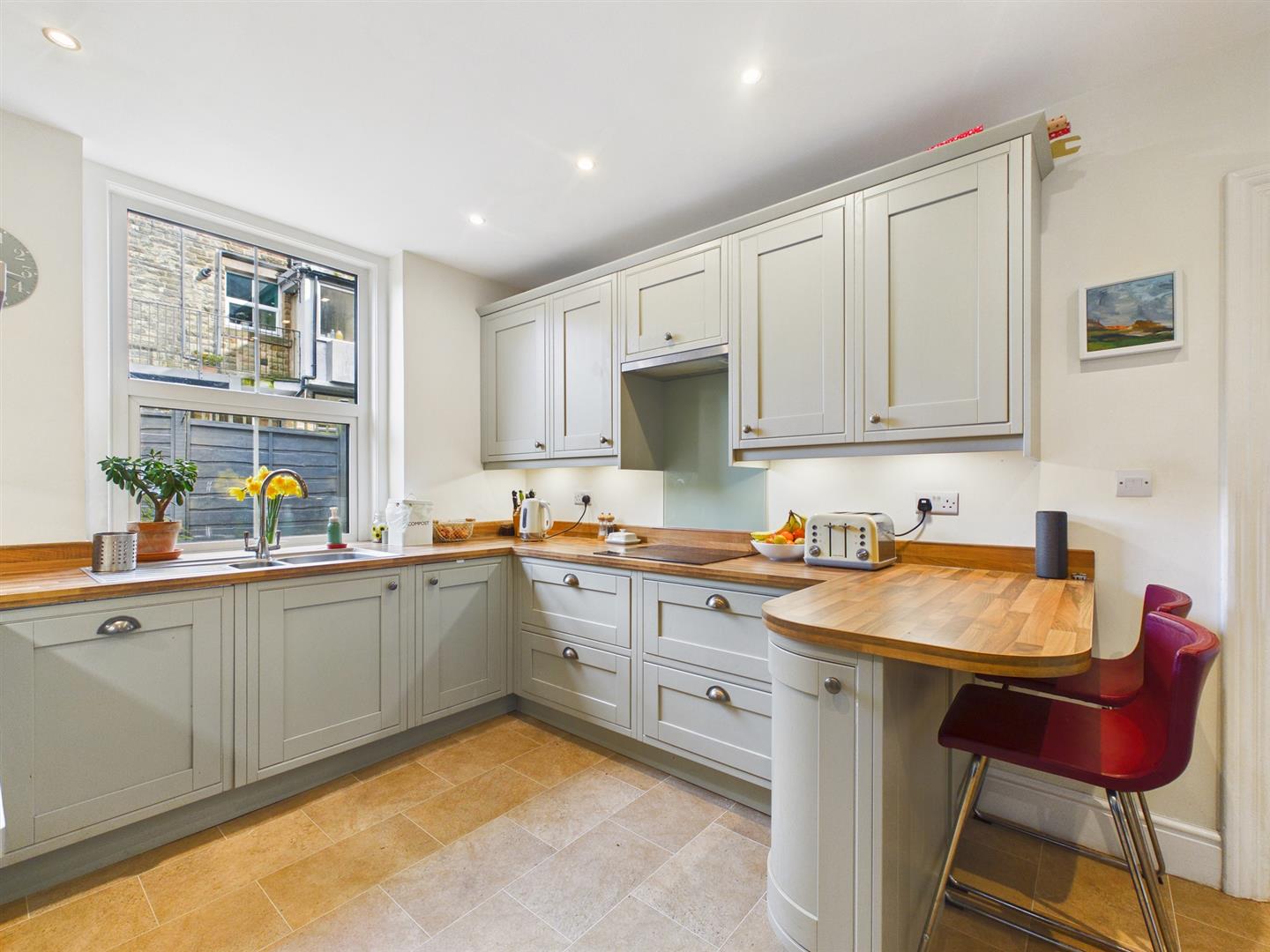 Kitchen - 4.24m x 3.00m (13'11 x 9'10") - Range of base and eye level units. Integrated dishwasher and washing machine. Worksurfaces with electric induction hob and extractor over. Built in double oven. One and a half bowl stainless steel sink unit. Breakfast bar. Window to side. Spot lighting. Karndean tiled effect flooring. Door to rear porch.