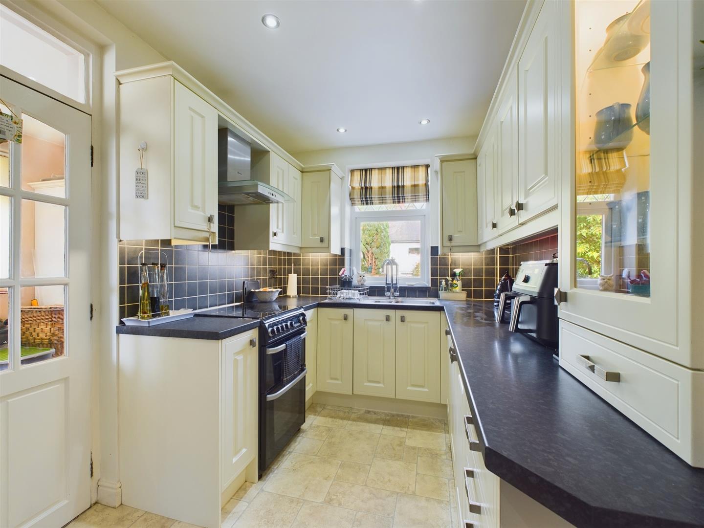 Kitchen - 3.68m x 2.21m (12'1" x 7'3") - Fitted with an excellent quality range of base and eye level units and working surfaces, incorporating a stainless steel single drainer sink unit with tiled splash back. With space and fitting for a gas cooker, stainless steel extractor fan and space for a fridge/freezer. Door to dining room, glazed door through into the utility room and uPVC sealed unit double glazed window to rear.