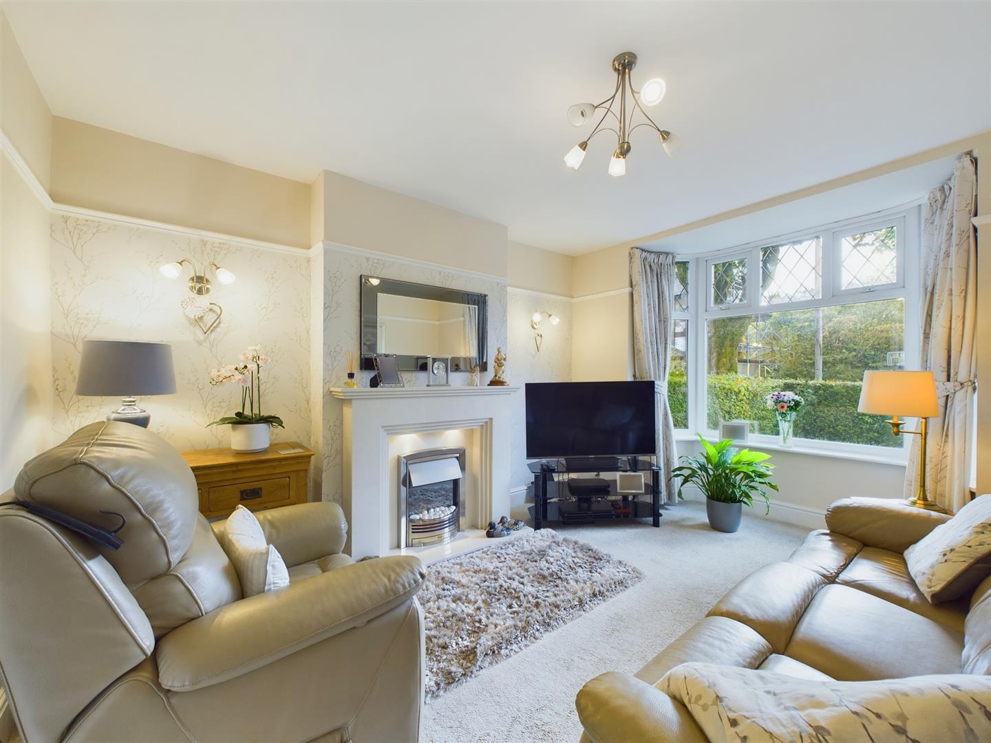 Dining Room - With feature decorative wooden fireplace surround and mantelpiece over, incorporating a coal effect living flame gas fire with white marble hearth and back panel. T.V. aerial point, single radiator and uPVC sealed unit double glazed bay window looking to the rear garden.