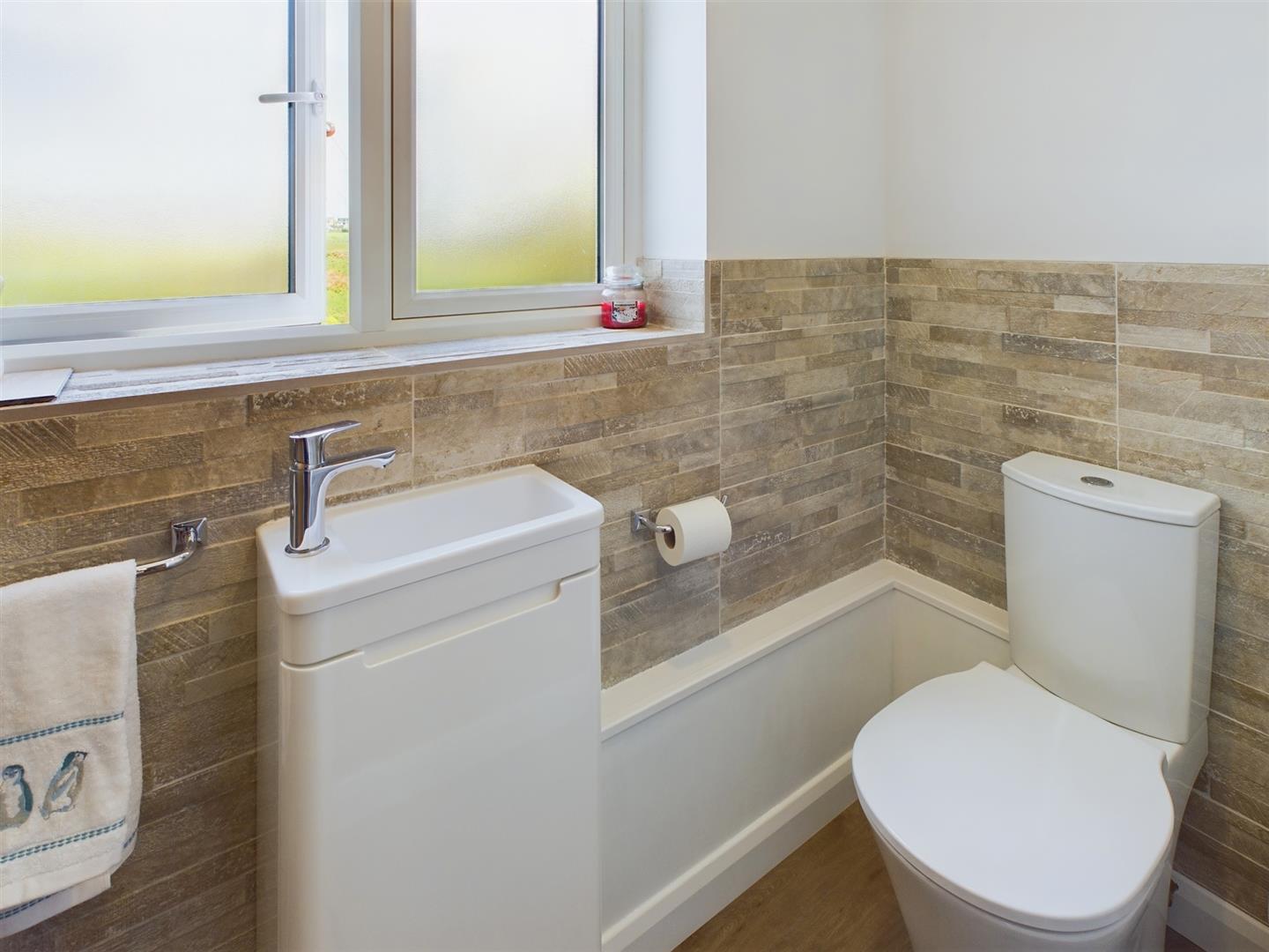 Cloakroom - 2.08m x 0.97m (6'10" x 3'2") - Part tiled and fitted with low level W.C. and vanity wall mounted wash basin. Frosted uPVC sealed unit double glazed window, under floor heating and extractor fan.