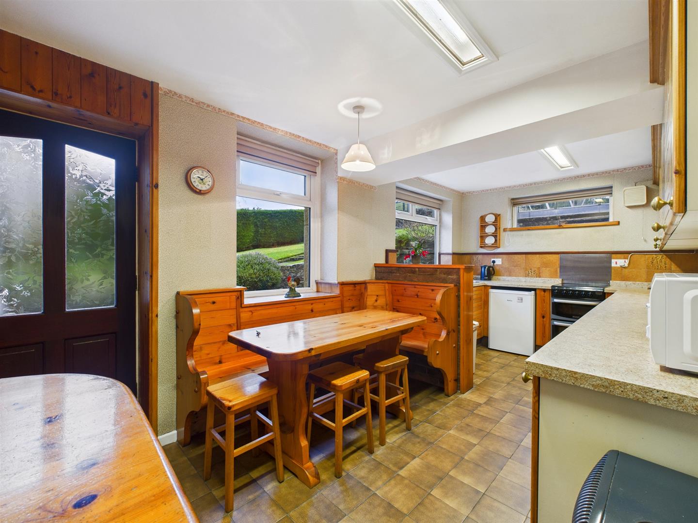 Dining/Kitchen - 5.33m x 2.59m (17'6" x 8'6") - With tiled flooring and fitted with a range of wooden base and eye level units and working surfaces, incorporating a stainless steel single drainer sink unit with tiled splashbacks. With space and fitting for an electric cooker and a larder fridge/freezer. A breakfast area with built in wooden seating. Double radiator, single radiator, door with frosted glazing to outside, door to cellar and two uPVC sealed unit double glazed windows.