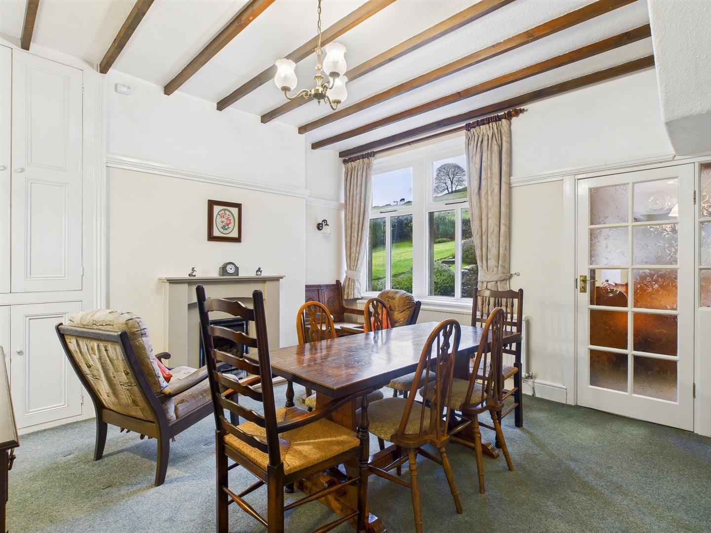 Dining Room - 4.11m x 4.09m (13'6" x 13'5") - With a feature stone fireplace surround and hearth, with mantelpiece over, incorporating a coal effect living flame gas fire. Double radiator, two wall-light points, wooden ceiling beams, picture rail, built-in floor to ceiling storage cupboard, glazed door through to the dining kitchen and sealed unit double glazed window to rear.