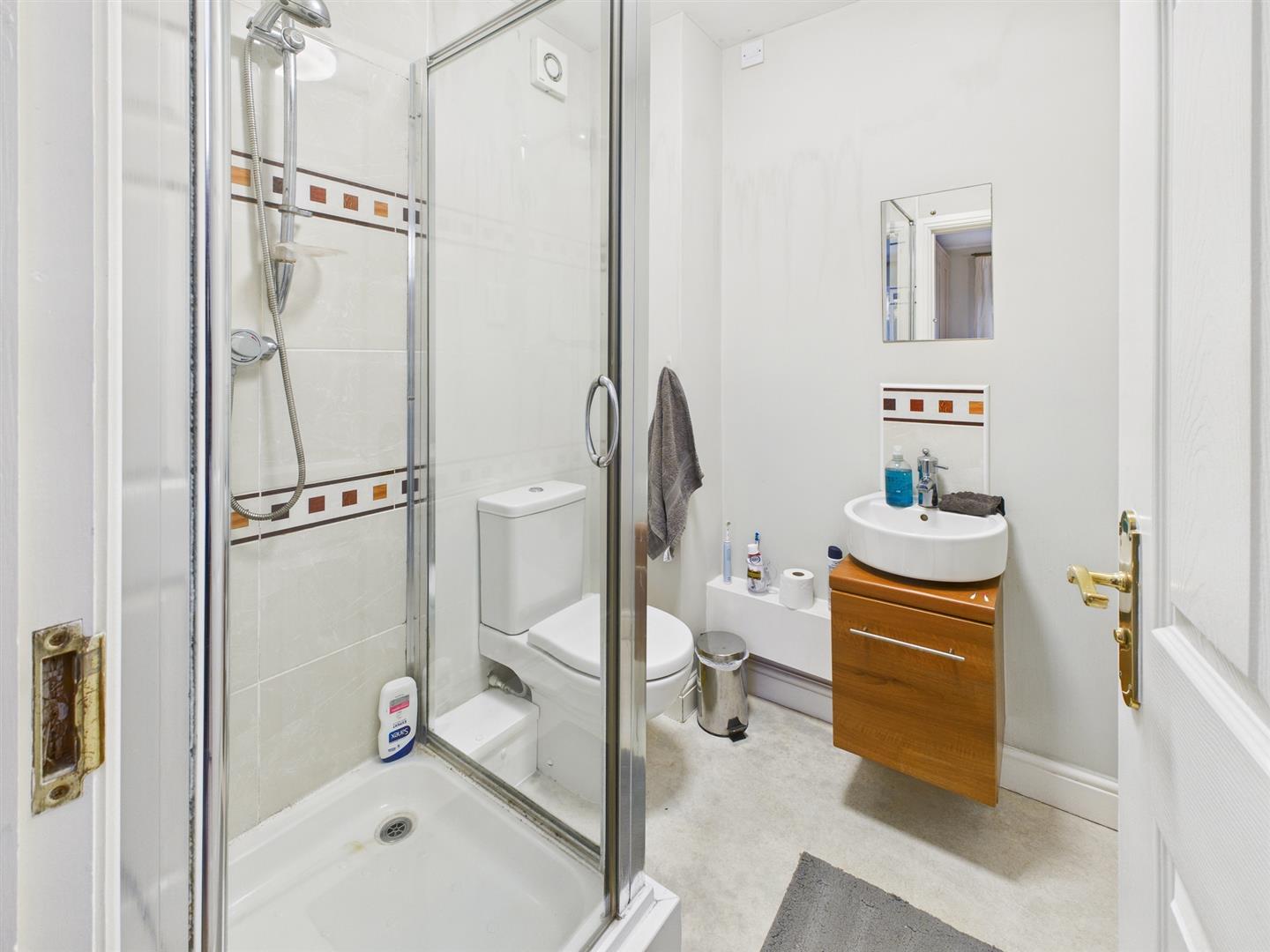 En-Suite Shower Room - 1.80m x 1.68m (5'11" x 5'6") - With a fully tiled and glazed shower cubicle and shower, vanity washbasin, low-level w.c., extractor fan and single radiator.