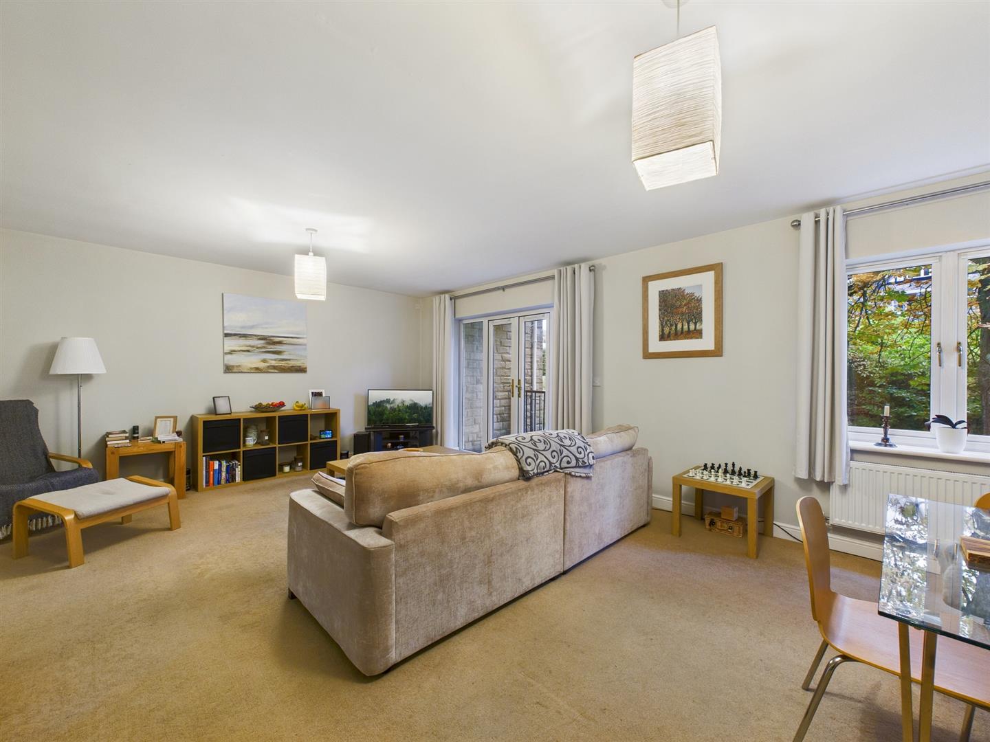 Lounge/Dining Room - 6.35m x 4.70m (20'10" x 15'5") - With uPVC sealed unit double glazed window and uPVC sealed unit double glazed French doors leading out to the decked balcony, with lawned communal gardens beyond. T.V. aerial point.