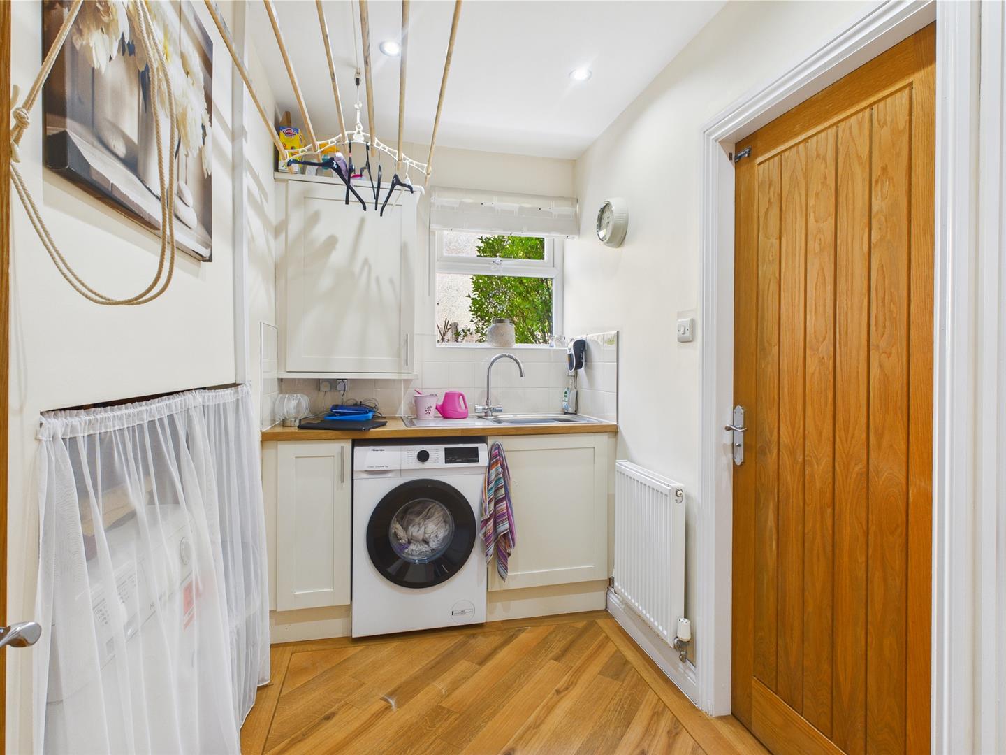 Utility Room - 3.10m x 1.60m (10'2" x 5'3") - With wood effect Karndean flooring throughout and fitted with a range of base units and working surfaces incorporating a stainless steel single drainer sink unit with tiled splash back. With space and plumbing for a washing machine, space for a tumble dryer, single radiator and uPVC sealed unit double glazed window to side.