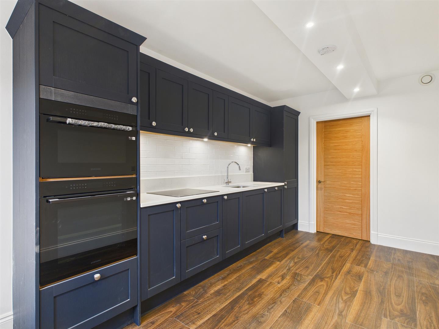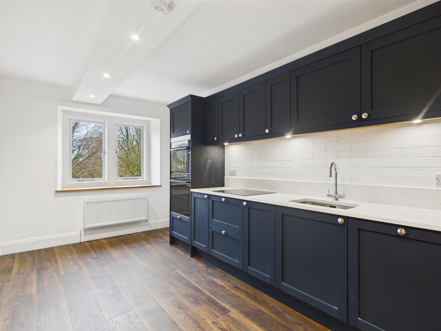 Dining Kitchen - 4.85m x 2.62m (15'11" x 8'7") - Fitted with an excellent quality range of base and eye level units and Quartz working surfaces incorporating a four ring induction hob, oven, dishwasher and integrated fridge/freezer. Double radiator and sealed unit double glazed window overlooking the communal gardens.