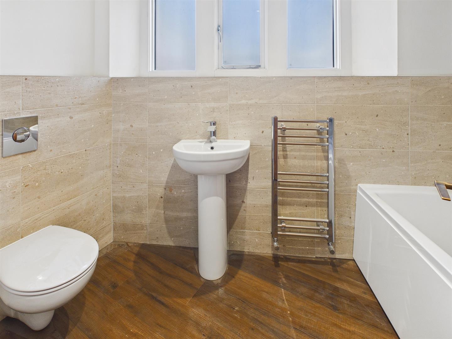 En-Suite Bathroom - 2.72m x 1.75m (8'11" x 5'9") - Fitted with an excellent quality suite comprising panelled bath with shower over and shower screen, low-level w.c. and pedestal washbasin. Part tiled, extractor fan and stainless steel heated towel rail.