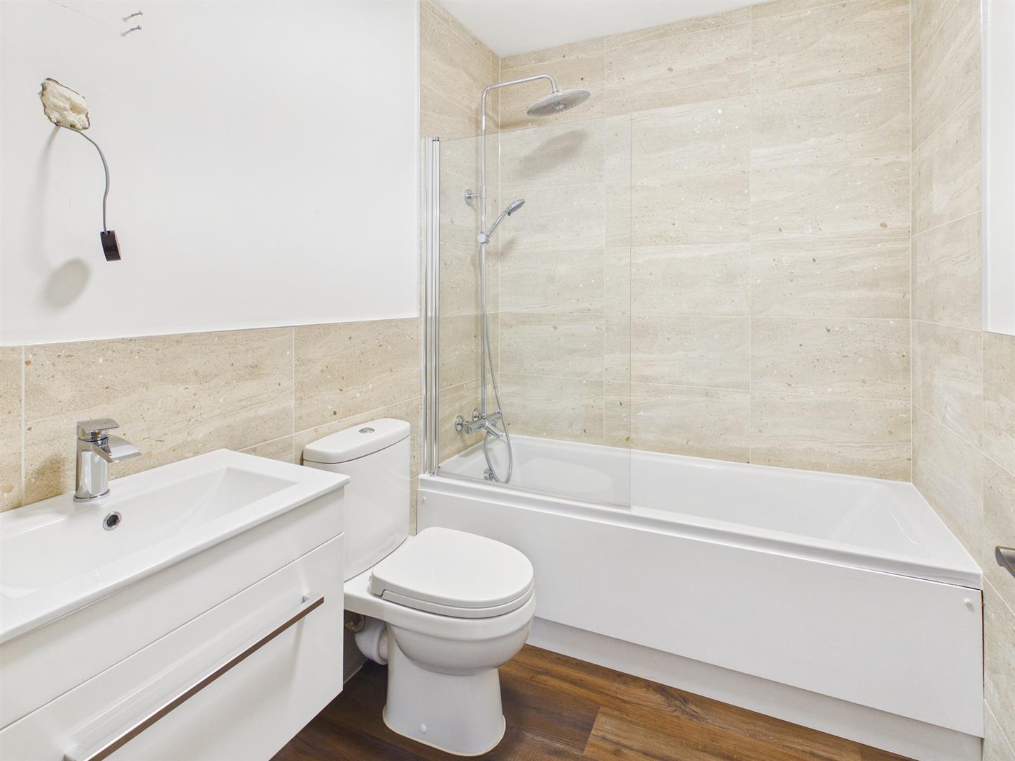 Bathroom - 2.31m x 1.65m (7'7" x 5'5") - Part tiled and fitted with an excellent quality suite comprising panel bath with rainfall shower and shower screen, vanity wash hand basin and low level suite wc. With a stainless steel heated towel rail.