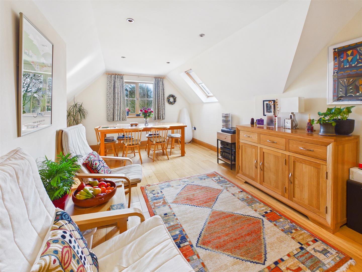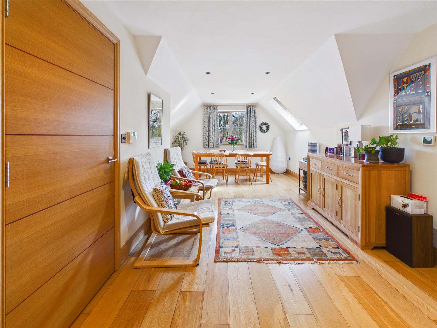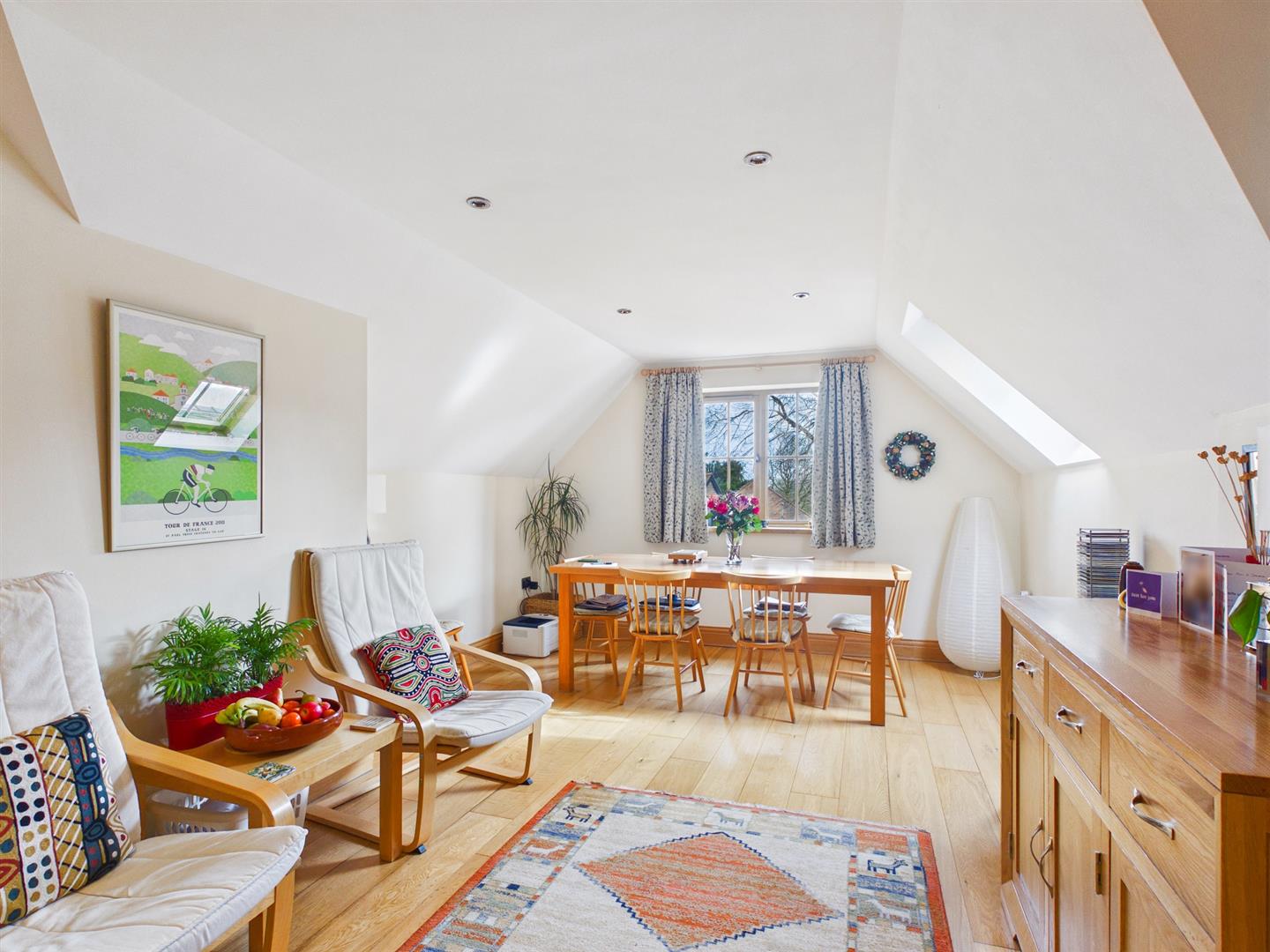 Dining/Reception Area - 5.72m x 3.66m (18'9" x 12'0") - A room combining dining space and a seating area. Double glazed Velux window to rear and window to side. Spot lighting. Engineered wood flooring with underfloor heating.