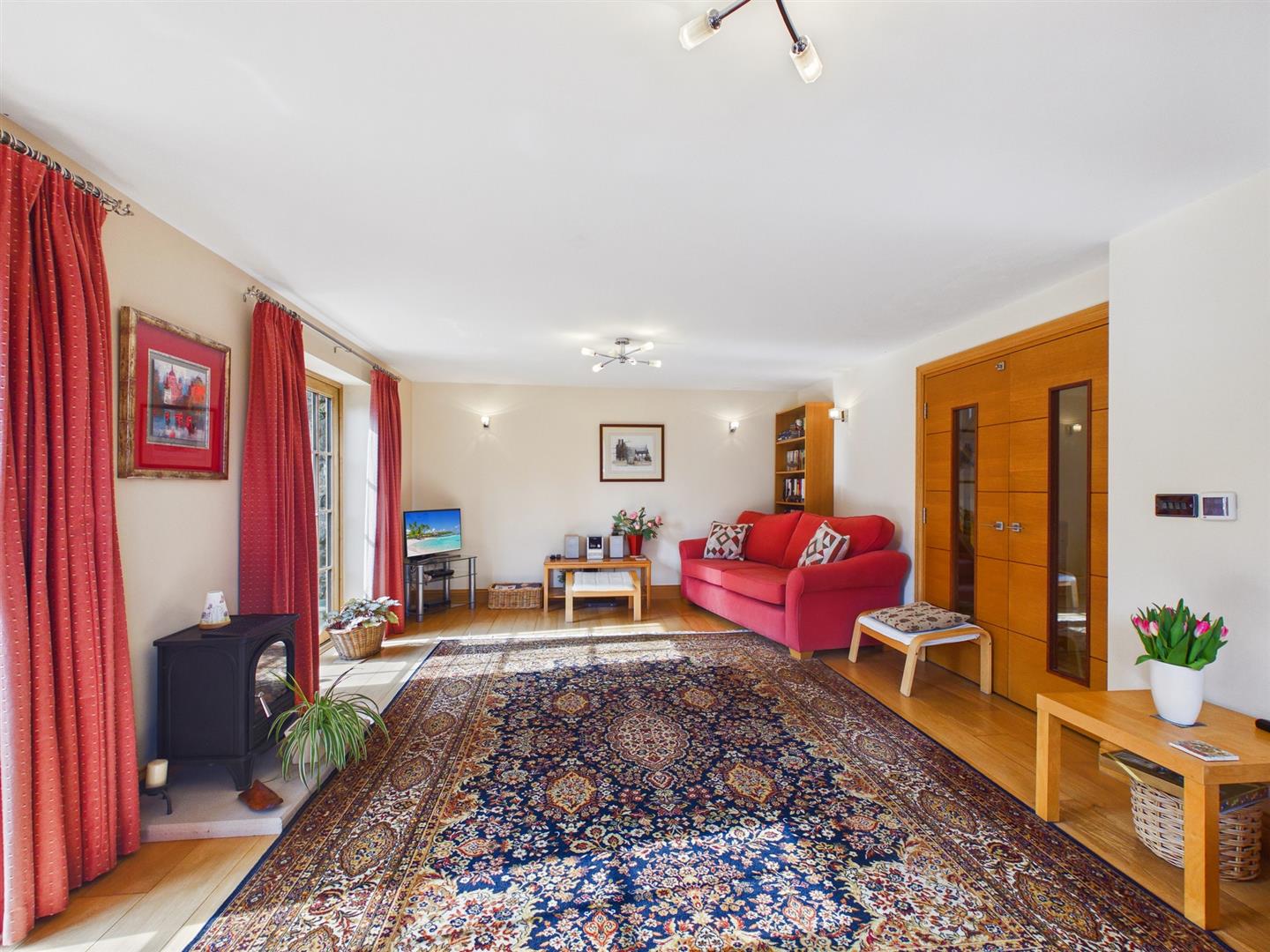 Bedroom One - 3.99m x 3.91m (13'1" x 12'10") - Double glazed windows to side and front. Range of hand built wardrobes and cupboards. Spot lighting. Underfloor heating.