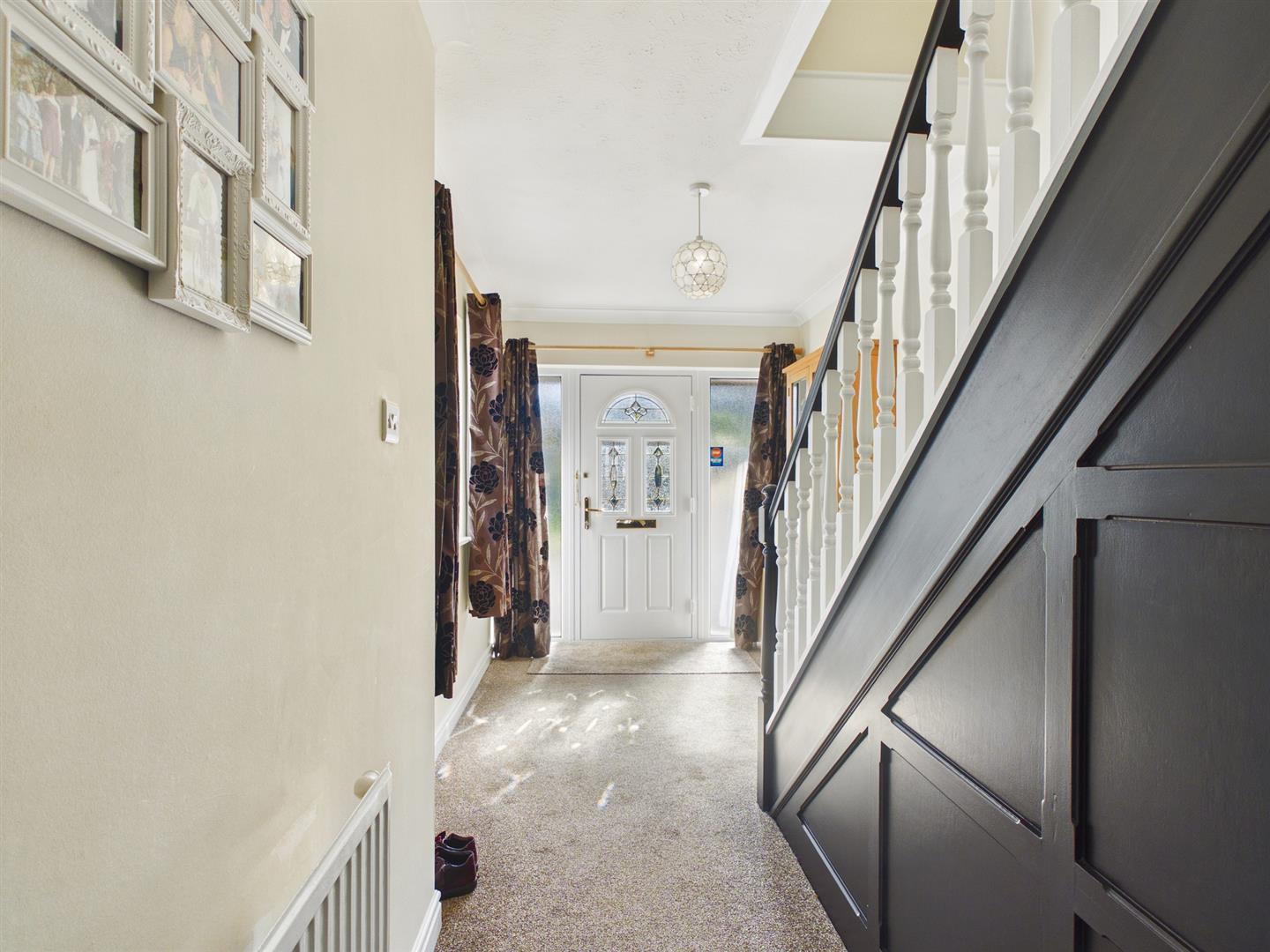 Entrance - 6.60m x 1.96m (21'8" x 6'5") - Composite entrance door with decorative glass panels and glass panels either side. uPVC double glazed window to side. Stairs to first floor. Understairs storage cupboard. Radiator. Coving and skirting.