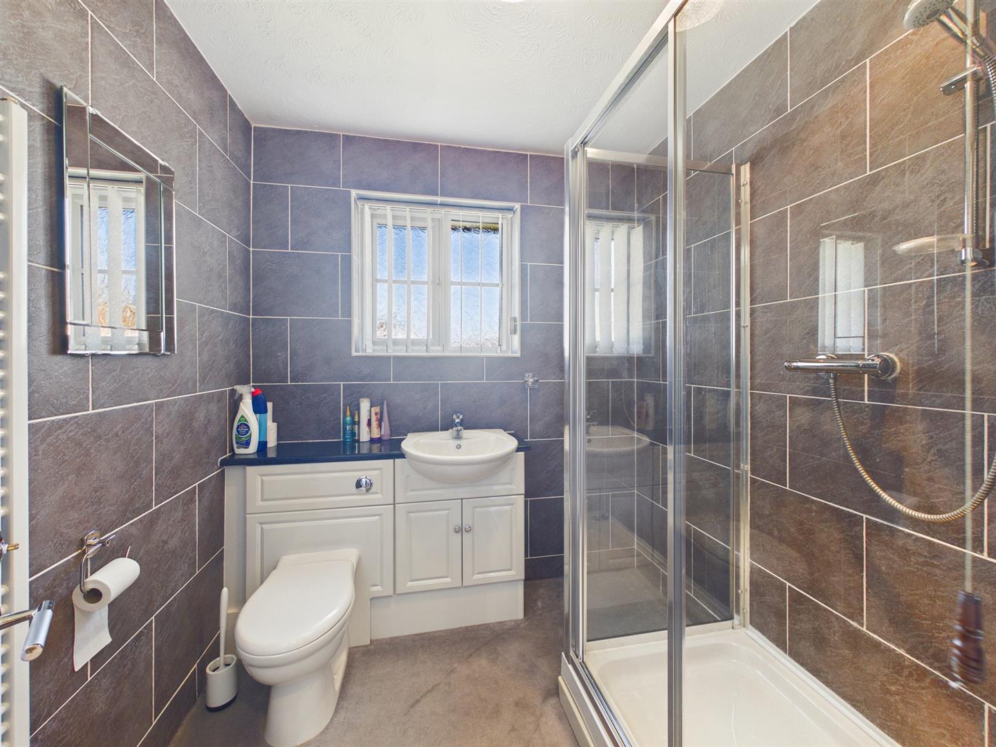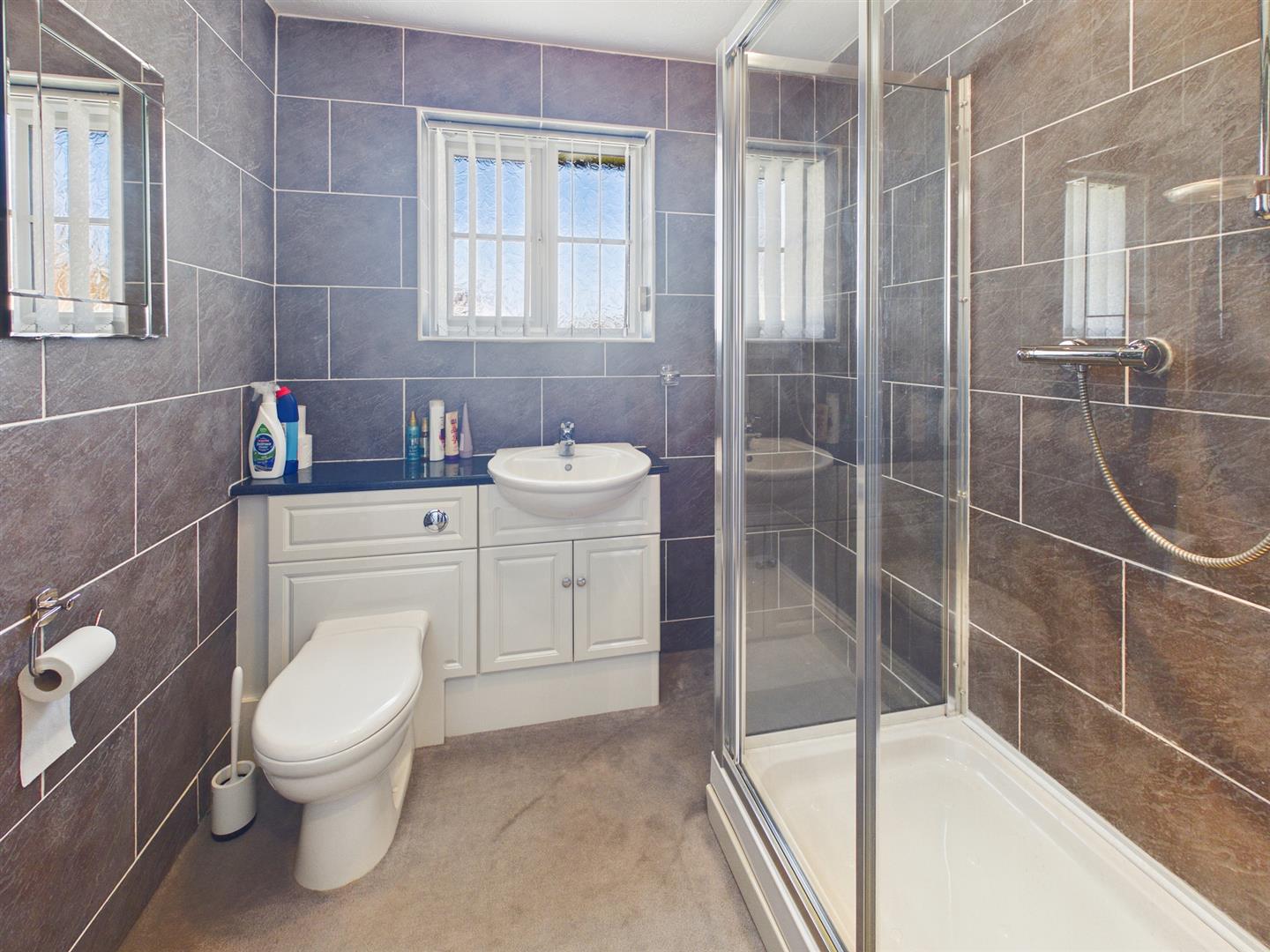 Bathroom - 2.06m x 1.98m (6'9" x 6'6") - uPVC window to rear. Double shower cubicle with power shower. Wash basin with storage under. Low level W.C. Towel rail. Tiled walls.