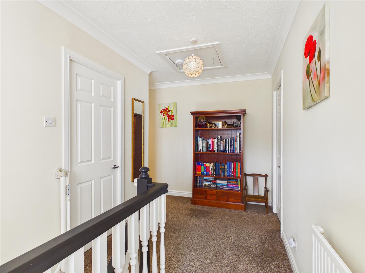 Landing - 5.31m x 1.96m (17'5" x 6'5") - uPVC window to front. Radiator. Loft access with loft ladder. Storage cupboard with shelving. Cupboard housing combination boiler.