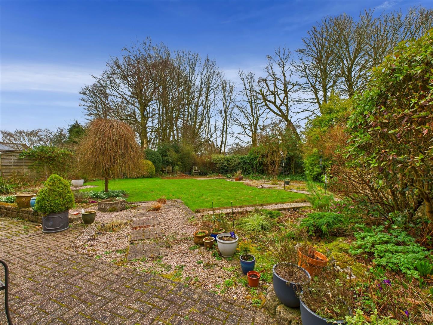 The rear garden is mainly laid to lawn with many mature flowerbeds, bushes, shrubs, trees etc. and block paved patio area and pathways.