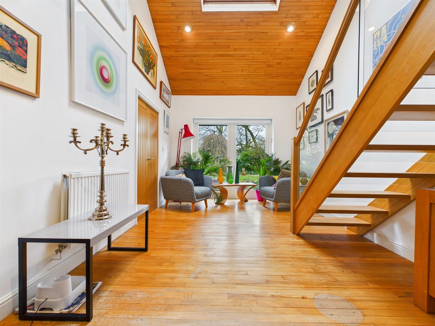 Dining Hall - 3.84m x 3.12m (12'7" x 10'3") - Pine flooring, double radiator, stairs to first floor leading to a galleried landing, double doors leading through into the lounge and sealed unit double glazed picture windows to the rear garden.