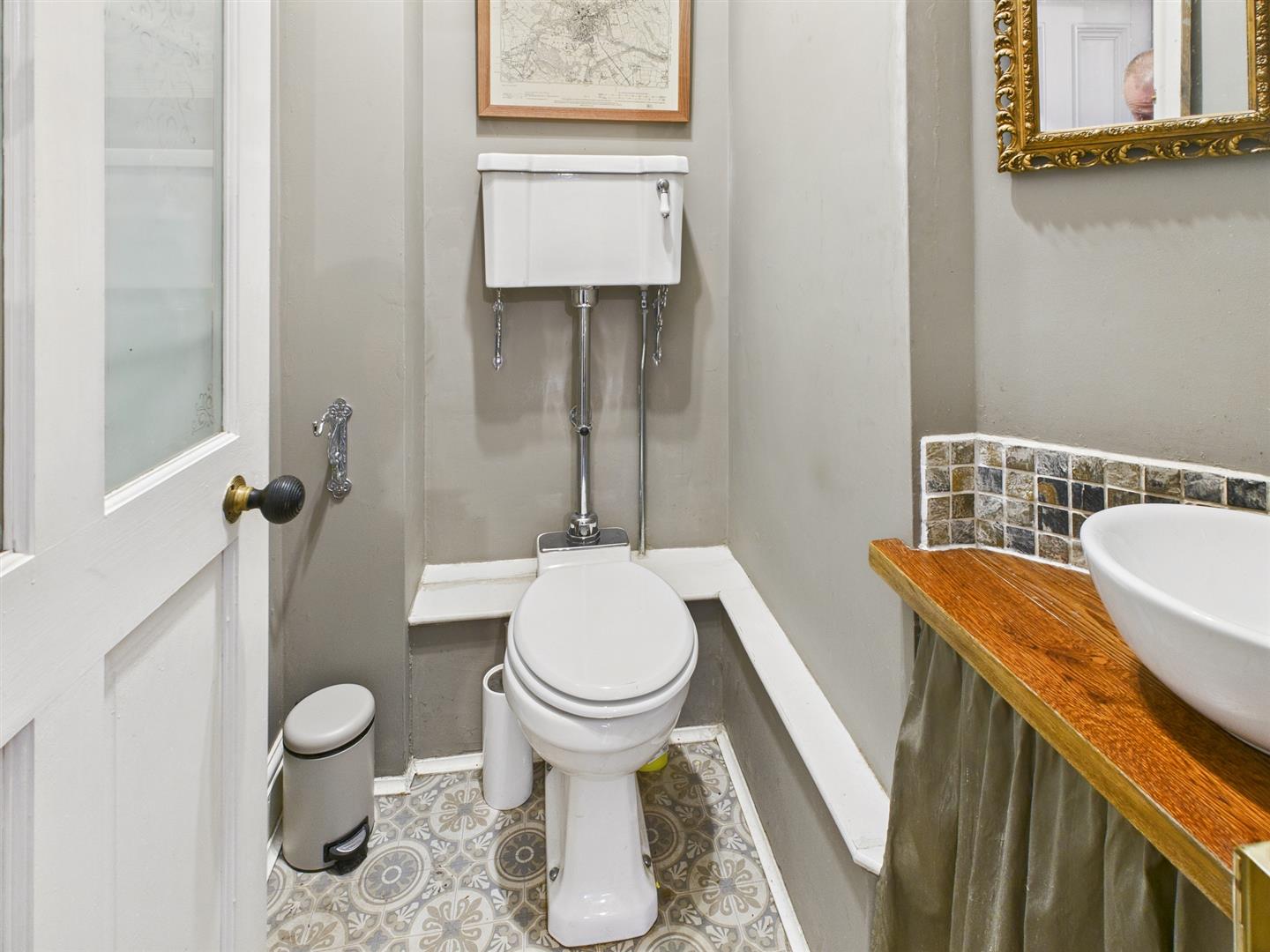 Cloakroom - 1.57m x 1.07m (5'2" x 3'6") - With high level W.C., wall mounted washbasin and extractor fan.