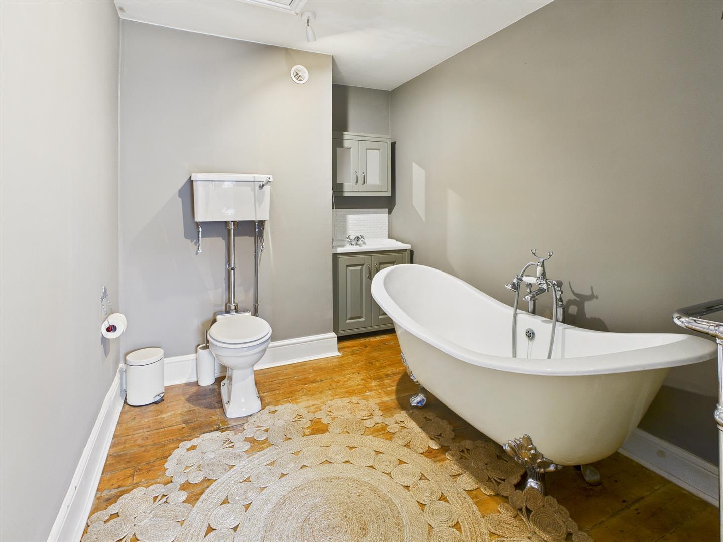 Bathroom - 3.43m x 2.34m (11'3" x 7'8") - With a free standing claw foot bath with Victorian-style shower fitting, high level W.C., and vanity washbasin with storage below. Victorian-style radiator and heated towel rail. Ceiling access to large loft storage.
