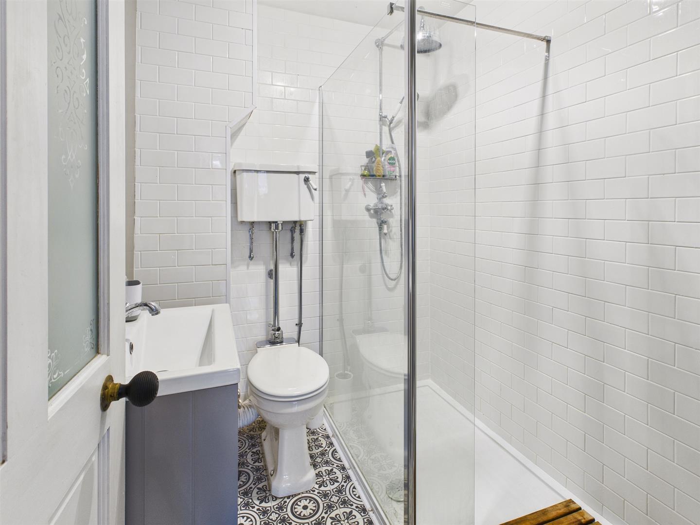 Shower Room - 1.98m x 1.70m (6'6" x 5'7") - With a fully glazed and tiled shower cubicle and rainfall shower, high level w.c. and vanity washbasin with storage below. Extractor fan, half tiled, Victorian style radiator and heated towel rail.