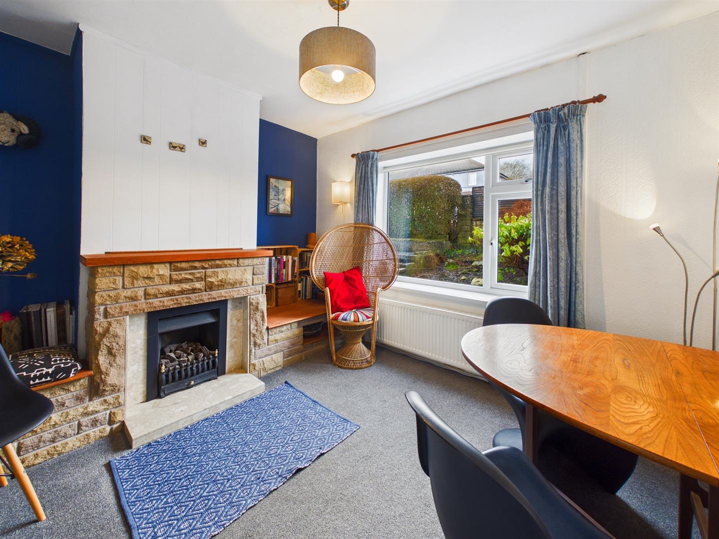 Dining Area - 3.45m x 2.95m (11'4" x 9'8") - Double glazed window to front, radiator. Inset Gas flame effect fire with stone surround and