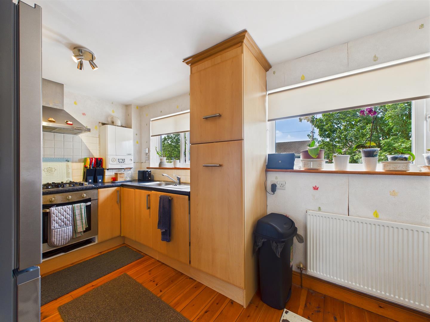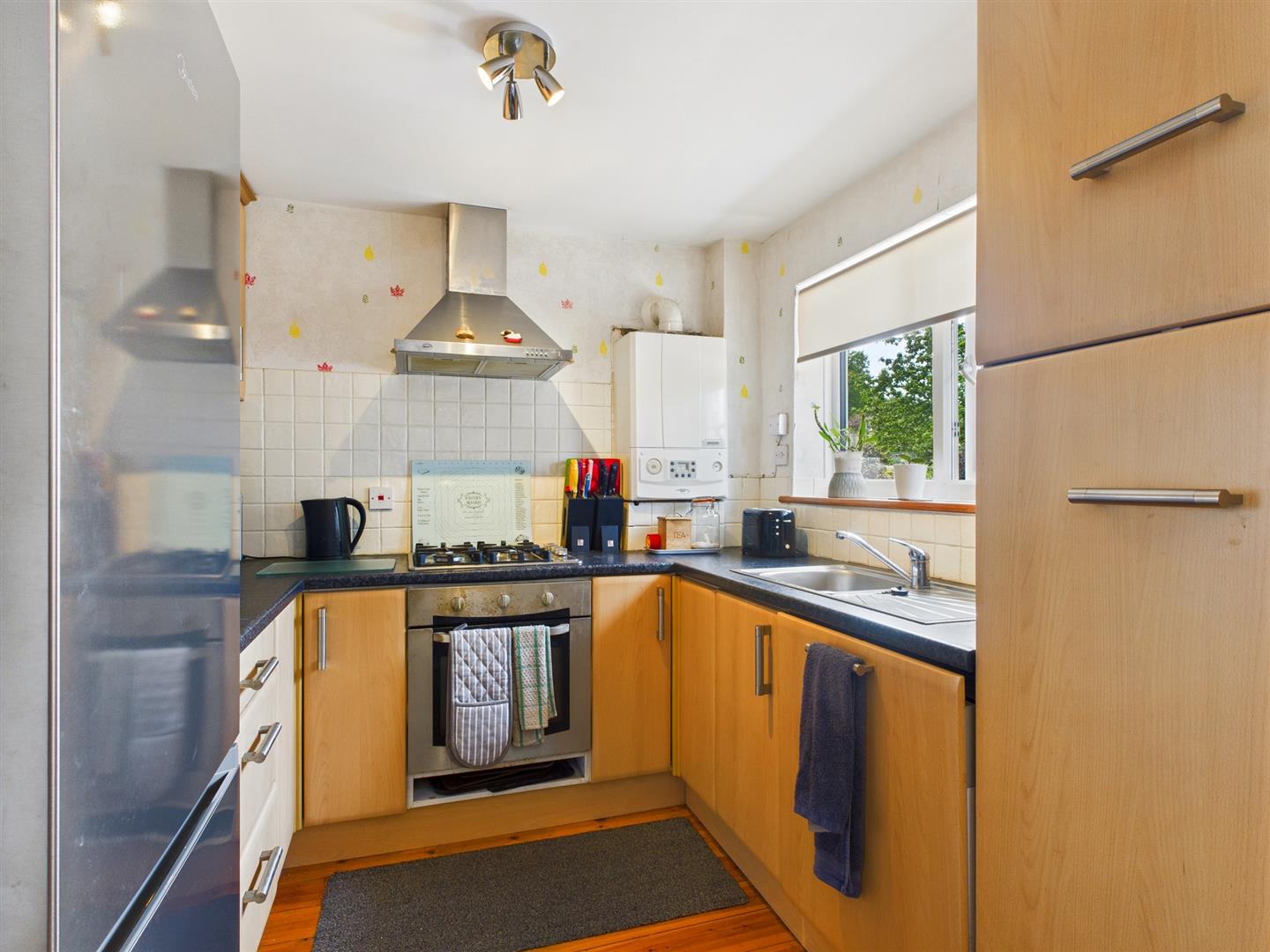 Kitchen/Dining Room - 4.83m x 2.39m (15'10" x 7'10) - Fitted with a good quality range of base and eye level units and working surfaces, incorporating a stainless steel single drainer sink unit with tiled splashbacks. With integrated stainless steel oven with four ring gas hob and stainless steel extractor over, integrated dishwasher and space for fridge/freezer. With wall mounted combination central heating and hot water boiler. Single radiator and two uPVC sealed unit double glazed windows to rear.