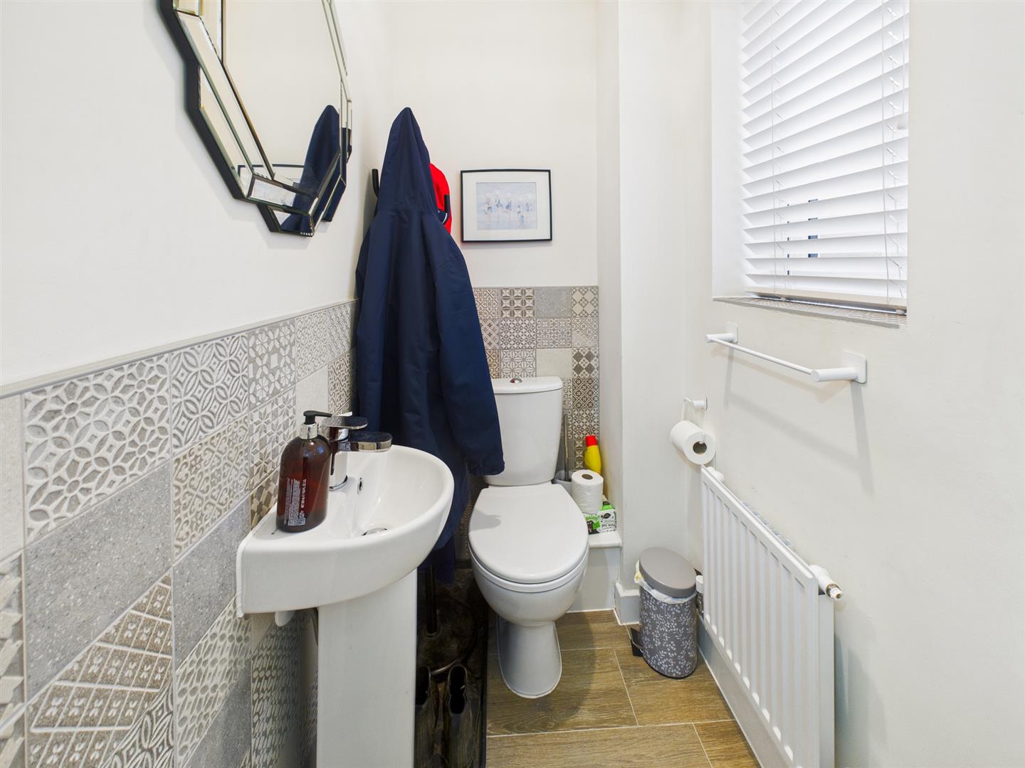 Cloakroom - 1.42m x 1.02m (4'8" x 3'4") - With low-level W.C., single radiator and frosted uPVC sealed unit double glazed window.