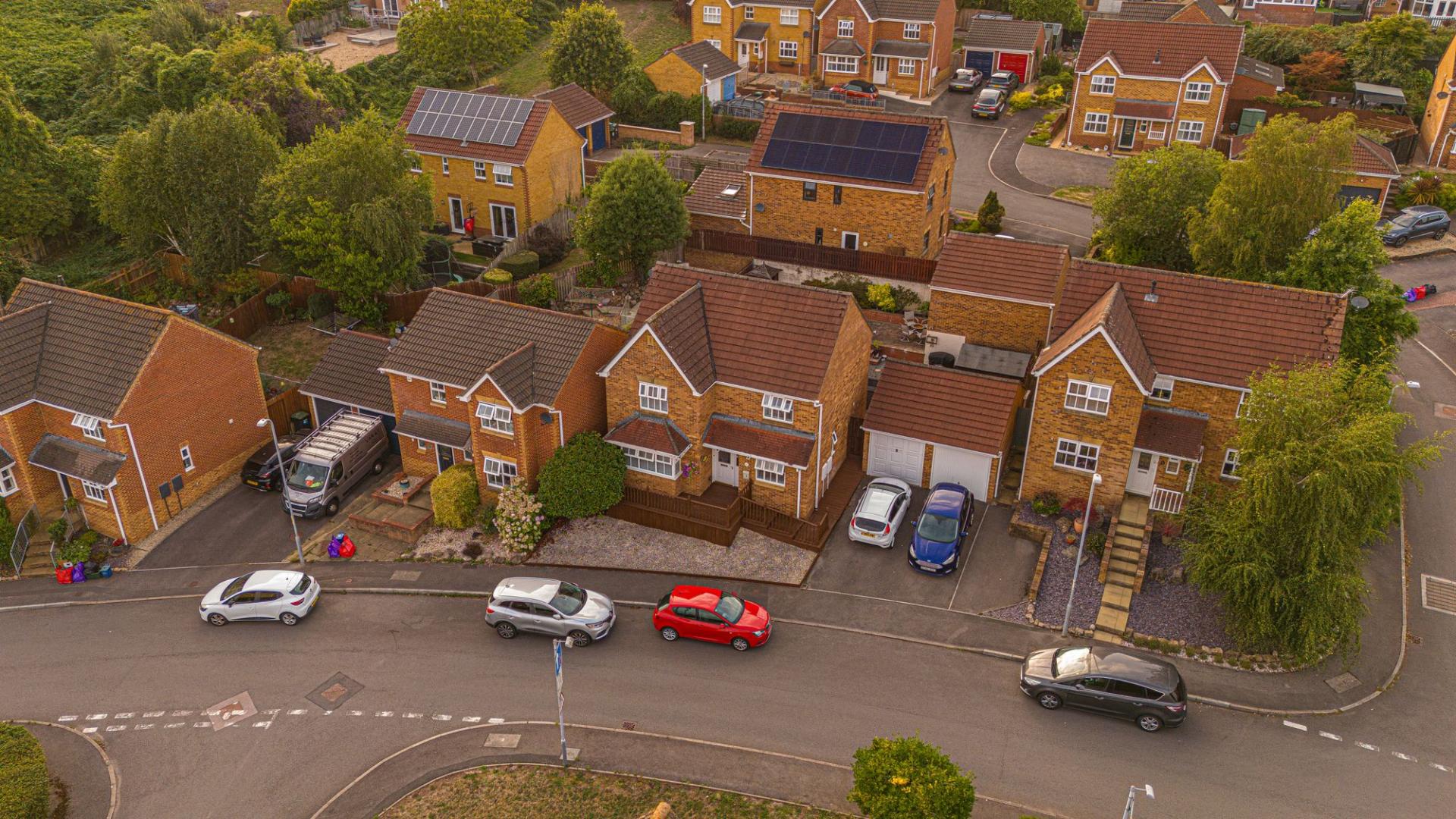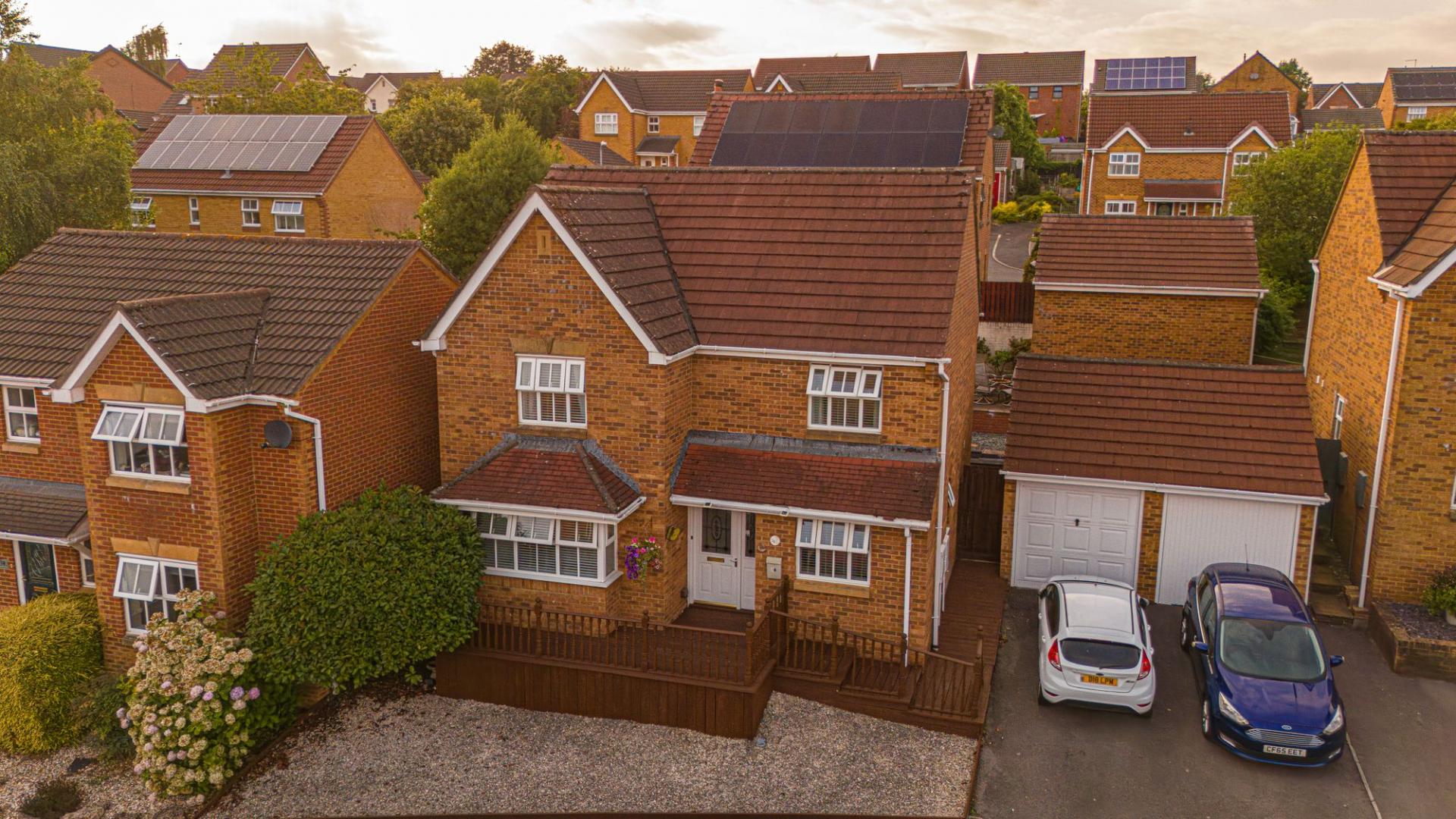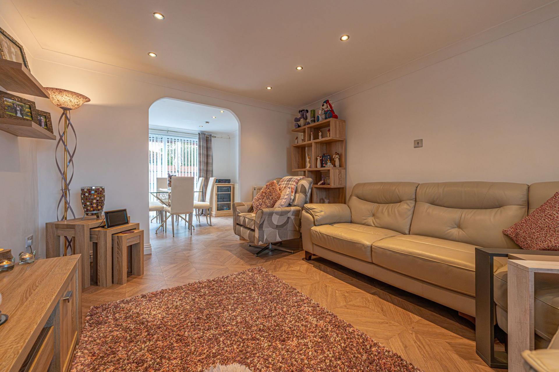 Set in a peaceful cul-de-sac, this family property combines modern style with practical living. The show-stopper kitchen comes complete with breakfast bar, Corian worktops, pull-out pantry and utility space. Flowing seamlessly into a bright dining room and spacious bay-fronted lounge, it’s perfect for family life and entertaining.