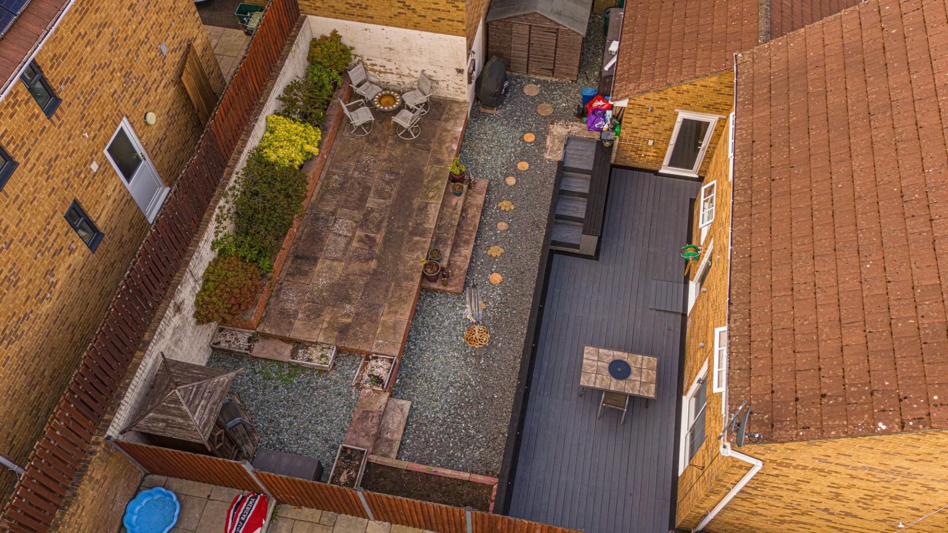 The enclosed rear garden is low-maintenance and private, with a decked seating area and tiered patio for al-fresco dining. A converted garage adds flexible space for a home office, gym or playroom, with parking on the driveway and excellent transport links just minutes away.