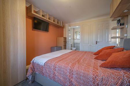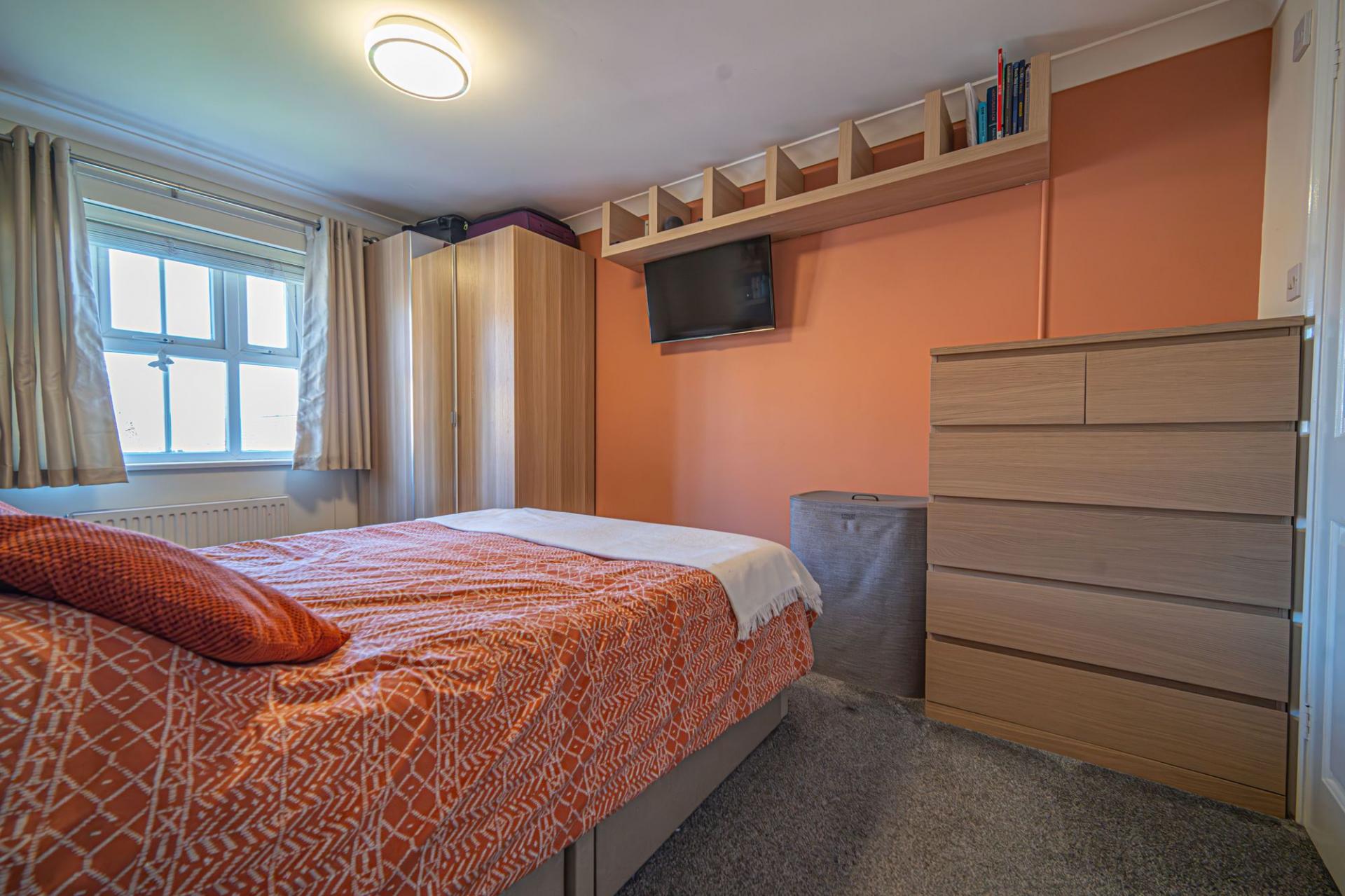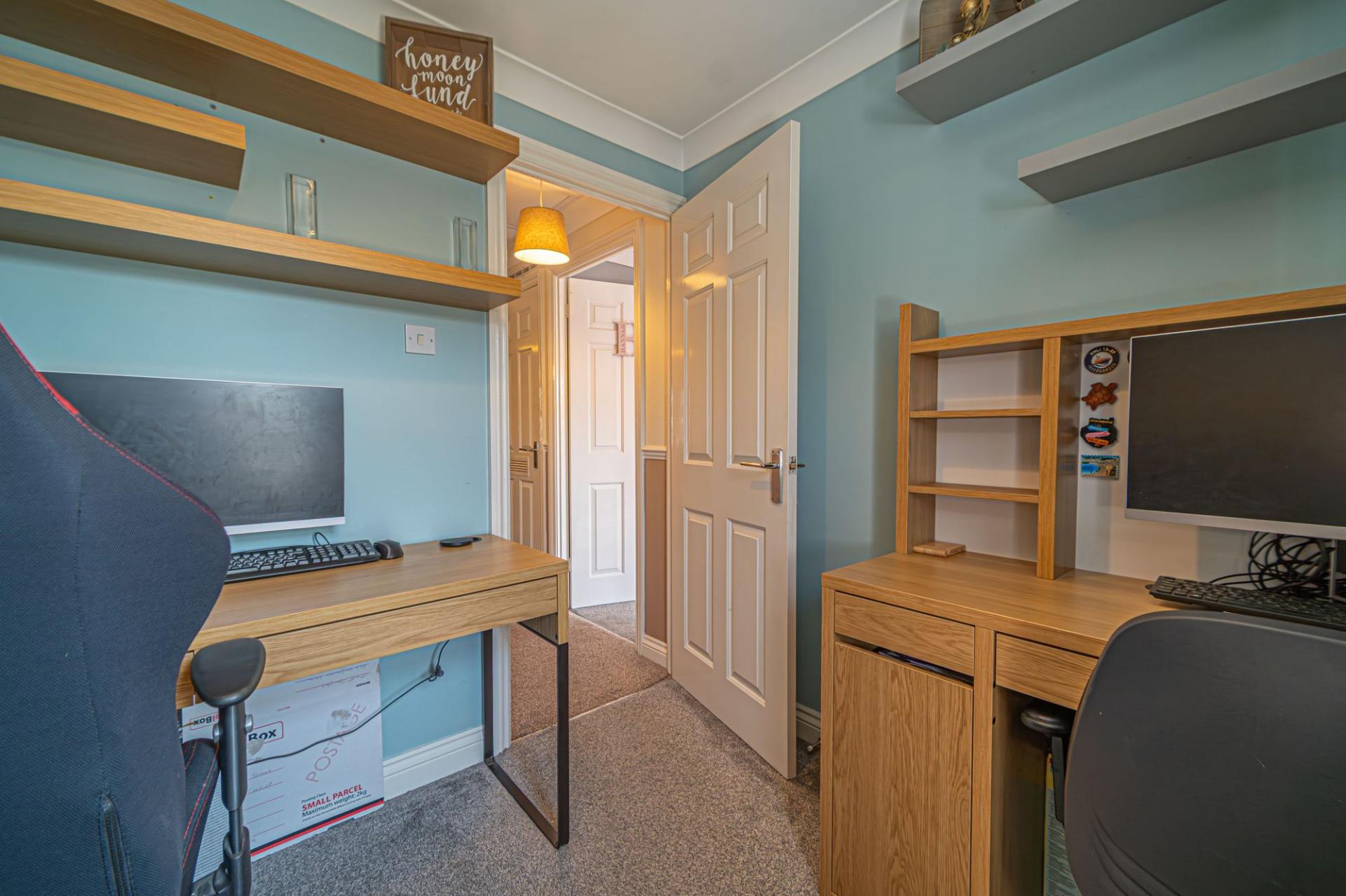 To the first floor we can find the four bedrooms, three of which are well sized double rooms with the fourth being a comfortable single, currently staged as a home office, providing a great space for those who work from home. Fitted storage is available from the hallway in a useful airing cupboard, while two of the bedrooms also have access to fitted wardrobes for excellent storage management. This includes the master bedroom, which has the added benefit of a private en-suite shower room, while the family bathroom can be found from the hallway, with a bath suite and overhead shower.