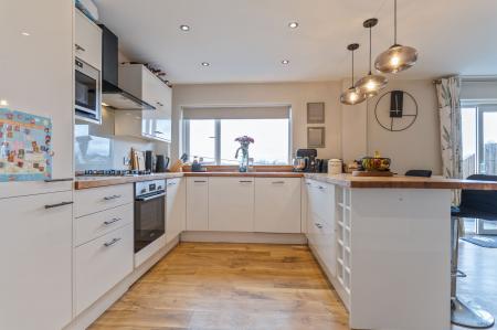 You enter the property through a spacious and welcoming hallway, with a convenient cloakroom positioned on the right, the principal living areas ahead and the staircase leading to the first floor. To the right, overlooking the front of the property, is a naturally bright living room offering ample space for a range of seating arrangements, creating a comfortable setting for relaxation. To the rear is the impressive open-plan kitchen/family room, a generous and sociable space ideal for modern family living. The large fitted kitchen provides an excellent range of wall and base units along with ample worktop space and room for dining furniture. Doors lead directly out to the rear garden, allowing for an abundance of natural light and seamless indoor-outdoor living.
