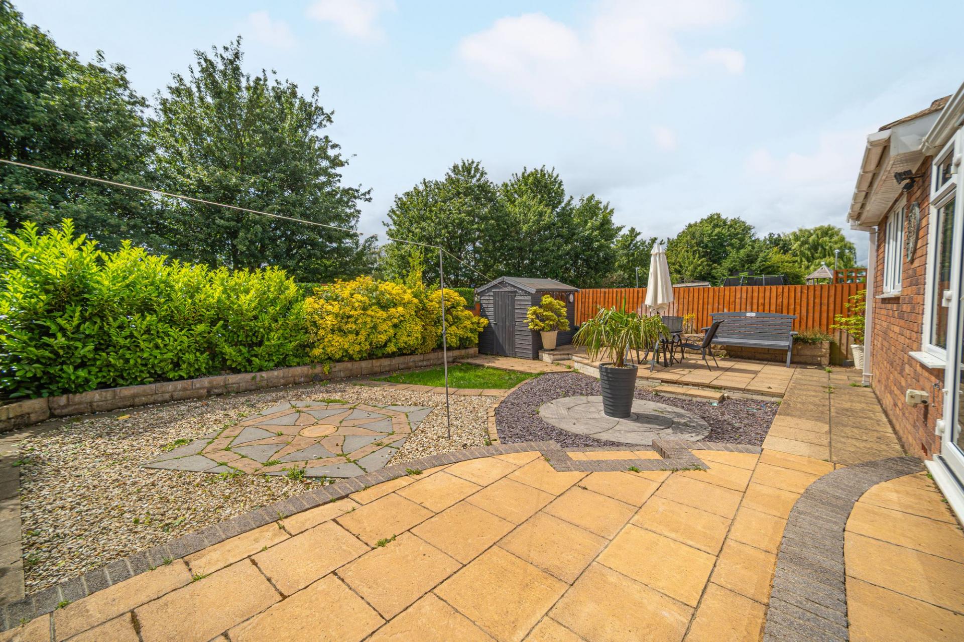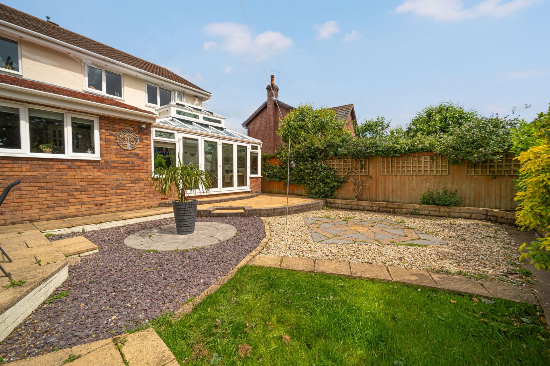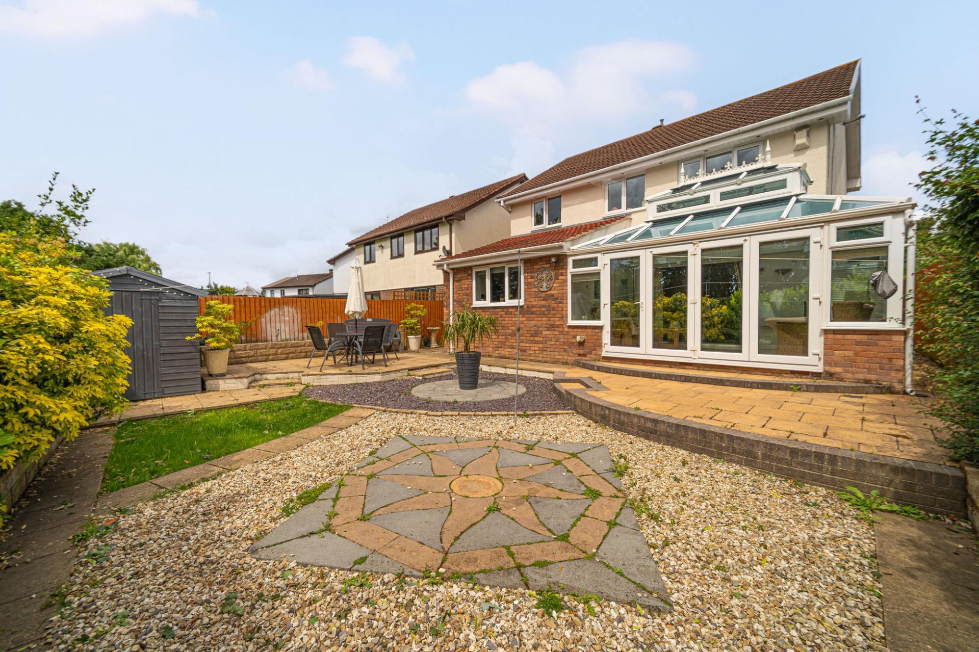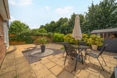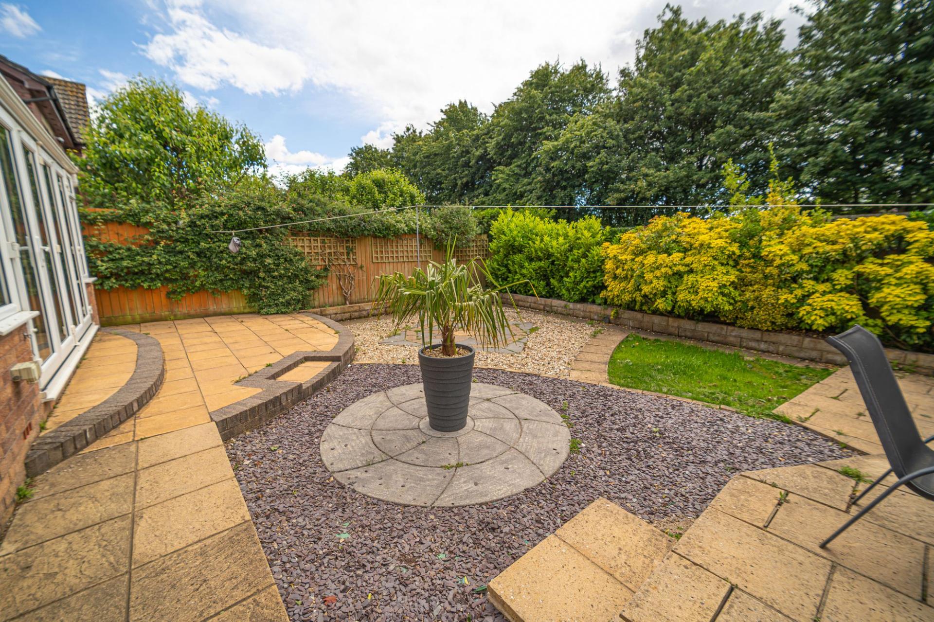 Stepping outside we have the glorious rear garden which has been maintained to an incredible standard, featuring a large patio extending from the house, connecting to a blend of pebble stone and turf lawn, which is adorned by a variety of shrubs to enhance this tranquil space. The garden is fully enclosed and is minimally overlooked, sitting on a quiet south facing plot, with allowing for plenty of sunshine throughout the day, perfect for relaxing, dining and entertaining guests.