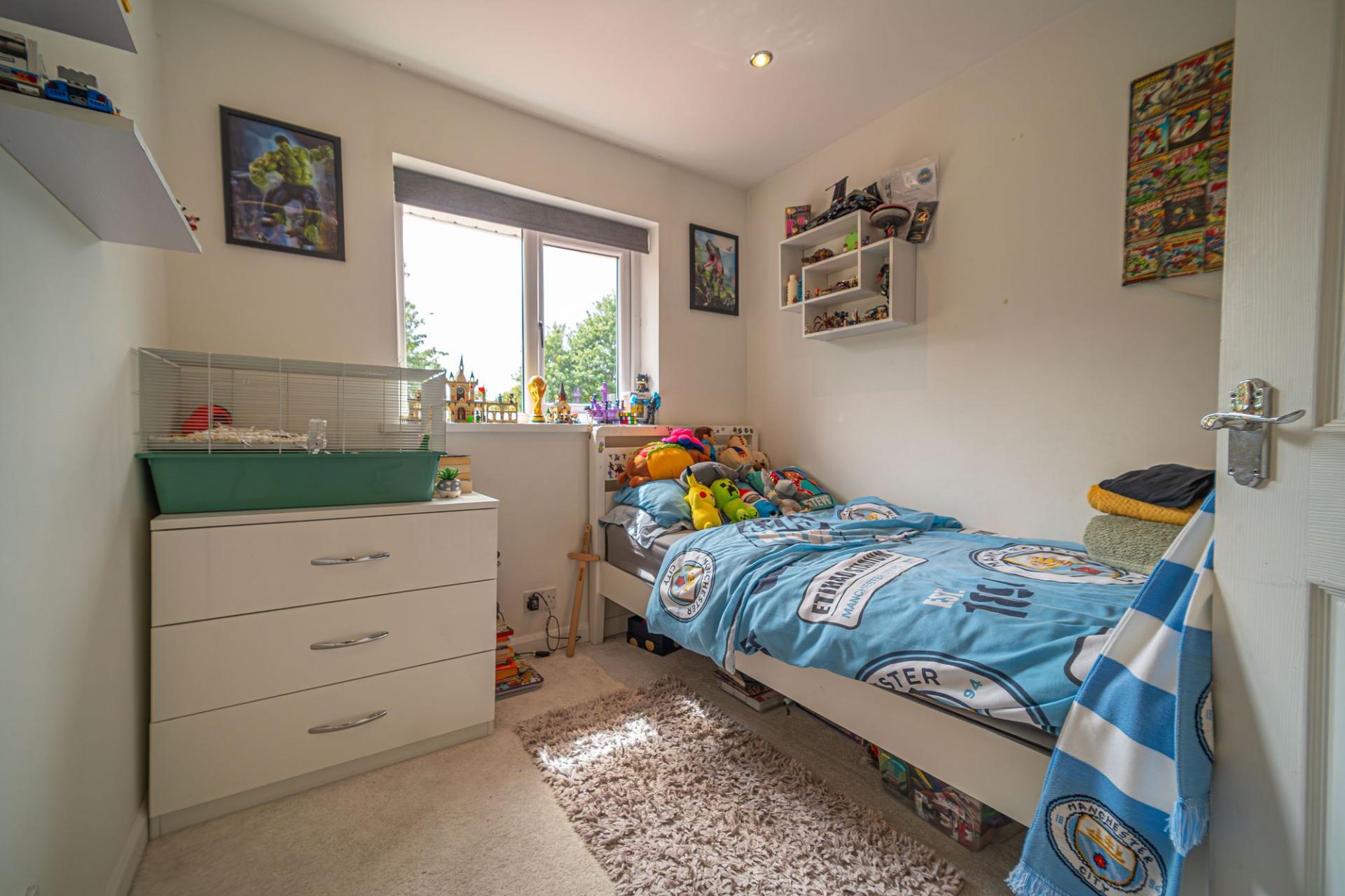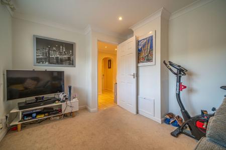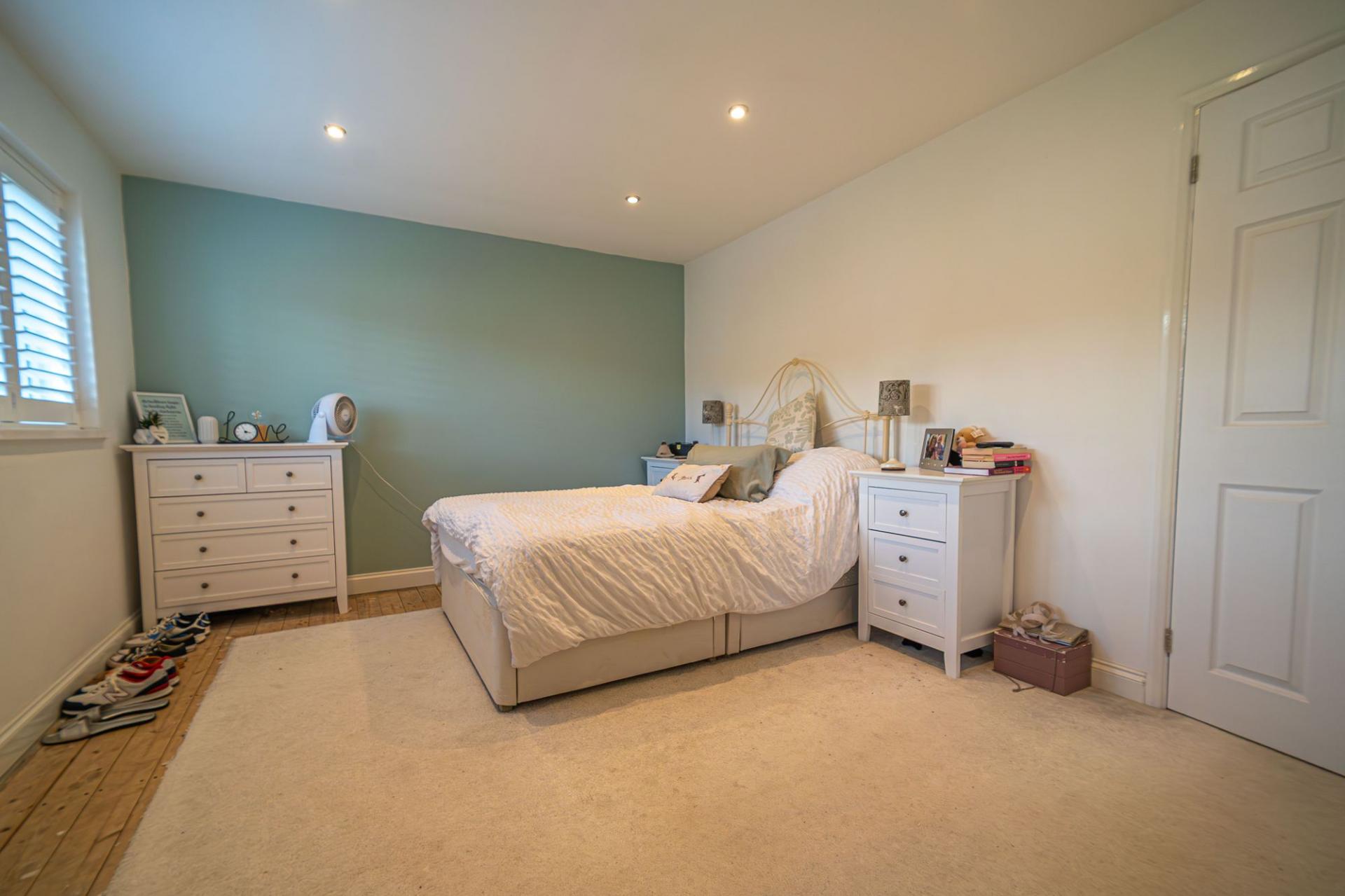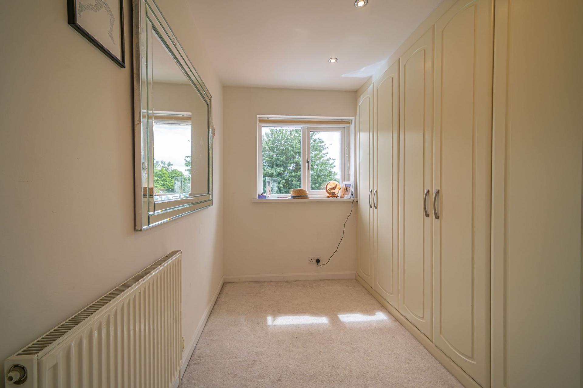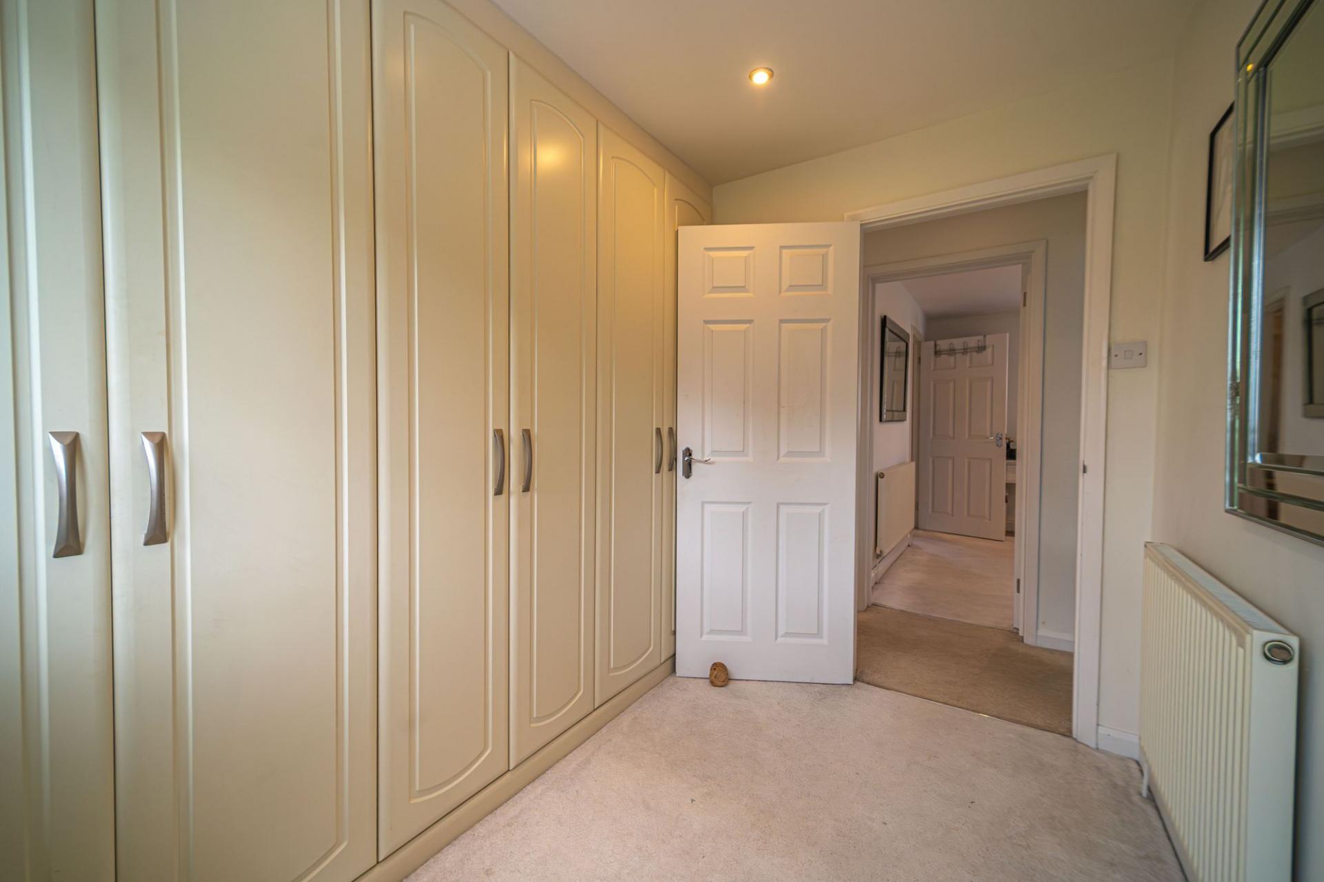 To the first floor we have the four bedrooms, three of which are double in size while the fourth is a cosy single room, fitted with an entire wall of wardrobes for convenient storage, making this a perfect space for a dressing room. The primary bedroom is the largest in size and has the added benefit of a en-suite shower room, while from the hallway we can find the family bathroom features a bath suite and two showers. An airing cupboard also provides further storage from the hallway.