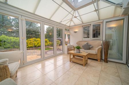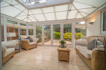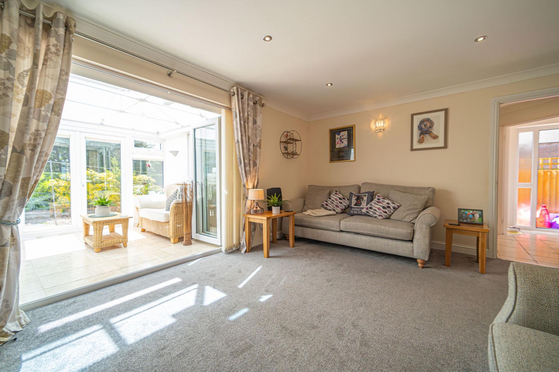 We enter this this beautifully presented property through the front where we are led through to the spacious living room. This wonderful reception room is flooded by light through bi fold doors that open effortlessly to extend the living space into the rear conservatory, which comes fitted with automated electronic shutters and tinted glass for added privacy. The marvellous kitchen is positioned at the side of the property, with plenty of storage options and a several integrated appliances, including a superb range cooker. A well sized dining room also sits opposite to the kitchen, connecting to another doorway outside and an under stairs store cupboard. Also on the ground floor is a convenient W.C, in addition to another reception room at the front of the house, highlighting the incredible versatility of the property. Potential uses for this snug living space are endless, with a games room, home office or even another bedroom being well suited. The garage can be accessed from within the house, and can be used for a wide range of potential functions. Currently being fashioned with a temporary stud wall which can be removed, its divided it into two sections, with front garage door opening to reveal a useful storage space and the back currently being used as a utility space.