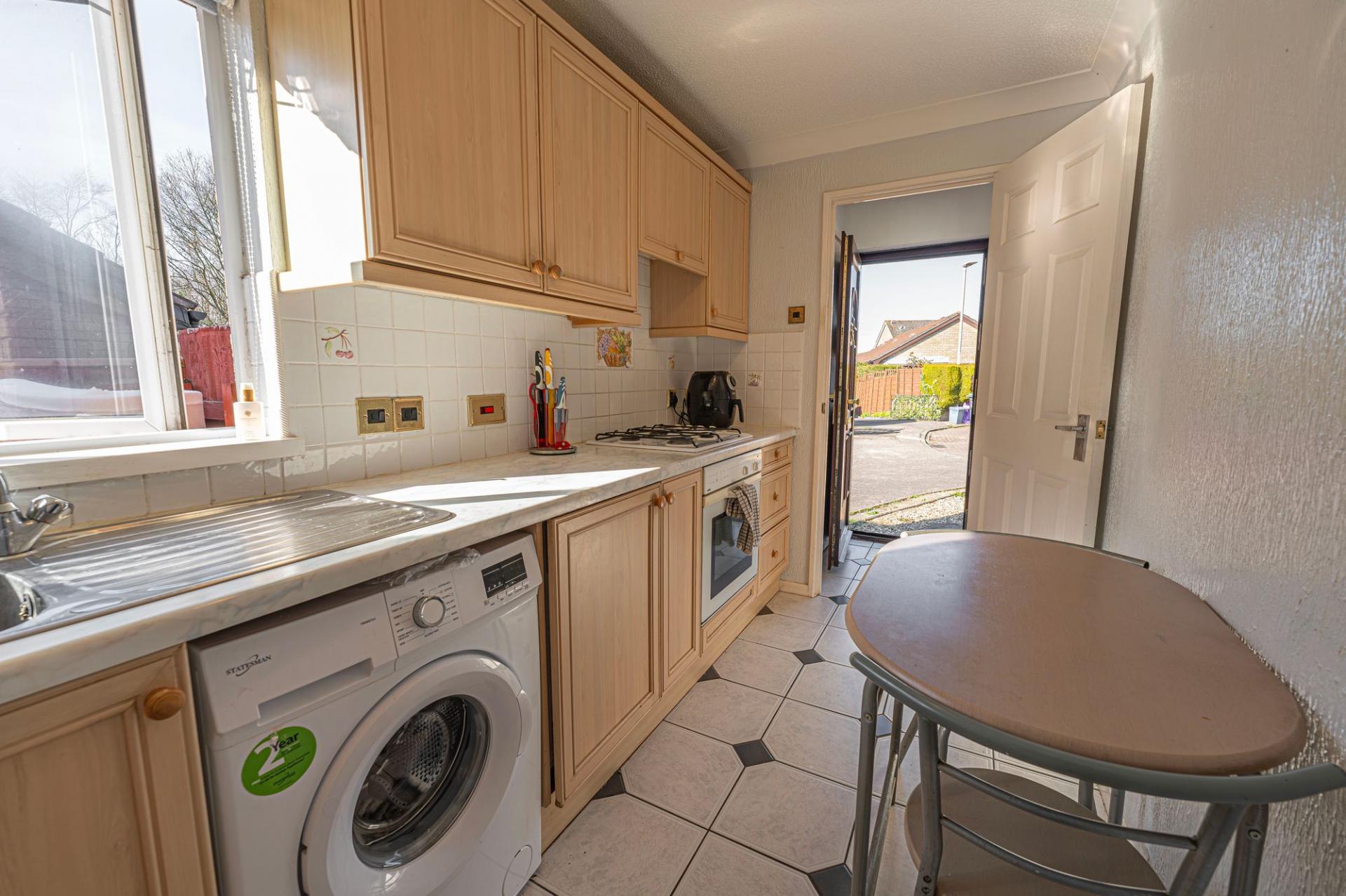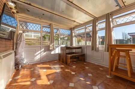 Stepping inside we have a spacious reception room to the front of the house, which is flooded by natural light and great for relaxing and entertaining guests. The kitchen is also found at the front of the house, with numerous storage cabinets and an integrated oven, hob, fridge, and space for a washing machine. Continuing through the house we have two bedrooms, one of which is a double with a convenient fitted wardrobe, while the second is a comfortable single - currently in use as a practical home office. The single bedroom also features sliding doors that open out to the wonderful rear facing conservatory, providing another flexible reception room that is bathed in natural light, and can access the garden. From the hallway we can find a helpful airing cupboard and the family bathroom, with a bath suite and shower.