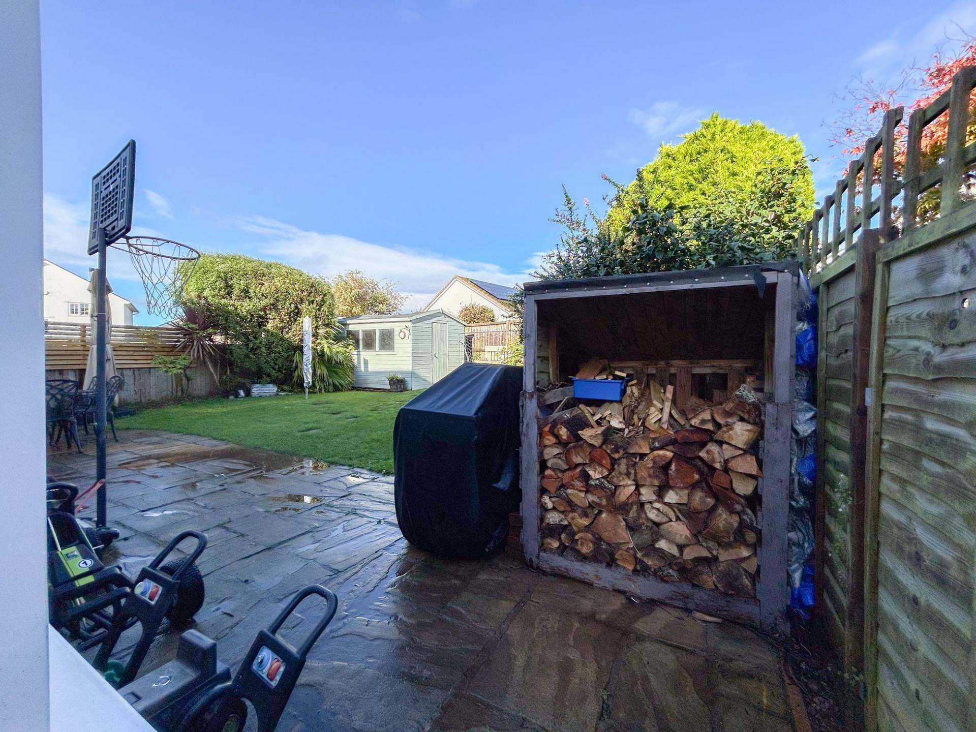 Upon entering, you’re greeted by a spacious hallway. To the left is a generous living room accessible via double doors, and to the right, the former garage. At the rear, the kitchen/diner boasts navy shaker-style units and integrated appliances, including a Neff oven, microwave, dishwasher, wine cooler, and a Neff five-ring gas hob with a separate utility room. A breakfast bar seats five, while the adjacent dining room is perfect for entertaining. Both spaces lead to an impressive conservatory with a log burner and sliding doors opening to a fully enclosed garden home to two sheds and featuring a patio and lawn. The property also includes a driveway with ample parking and an electric car charging pod, along with a convenient WC in the hallway.