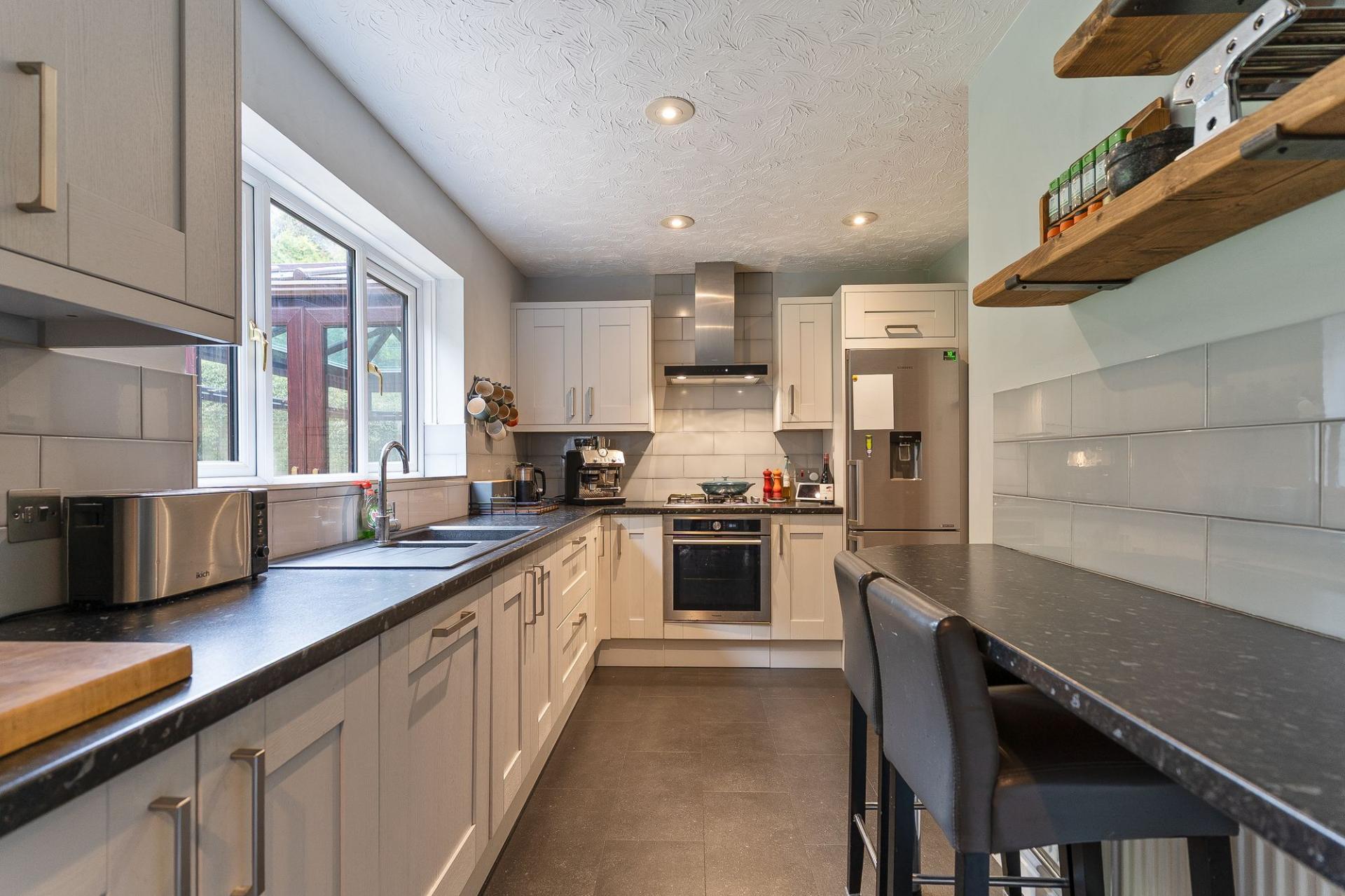 As you enter the property, you are welcomed into a spacious hallway that provides access to the main living areas, the convenient ground floor cloakroom, and the staircase to the first floor. To the left, the well-presented living room offers a bright and inviting space, perfect for relaxing or entertaining. Adjacent to this is the separate dining room, ideal for family meals and special occasions, which in turn leads through to the conservatory — a fantastic additional living area overlooking the garden. Together, these reception rooms create a versatile and sociable layout. The modern kitchen is fitted with ample storage units, worktop space, and a stylish breakfast bar area, while a separate utility room provides further practicality and access to the outside.
