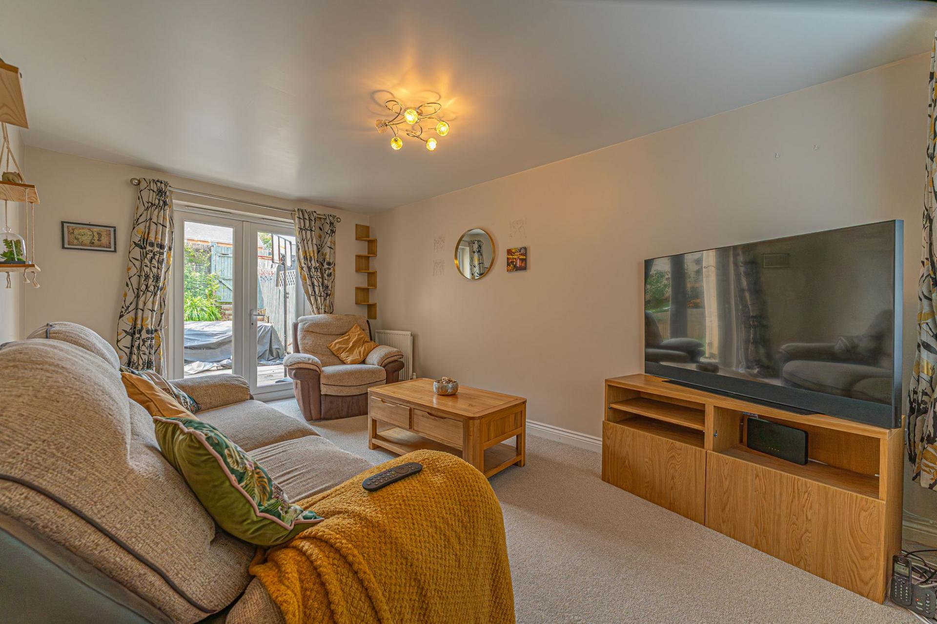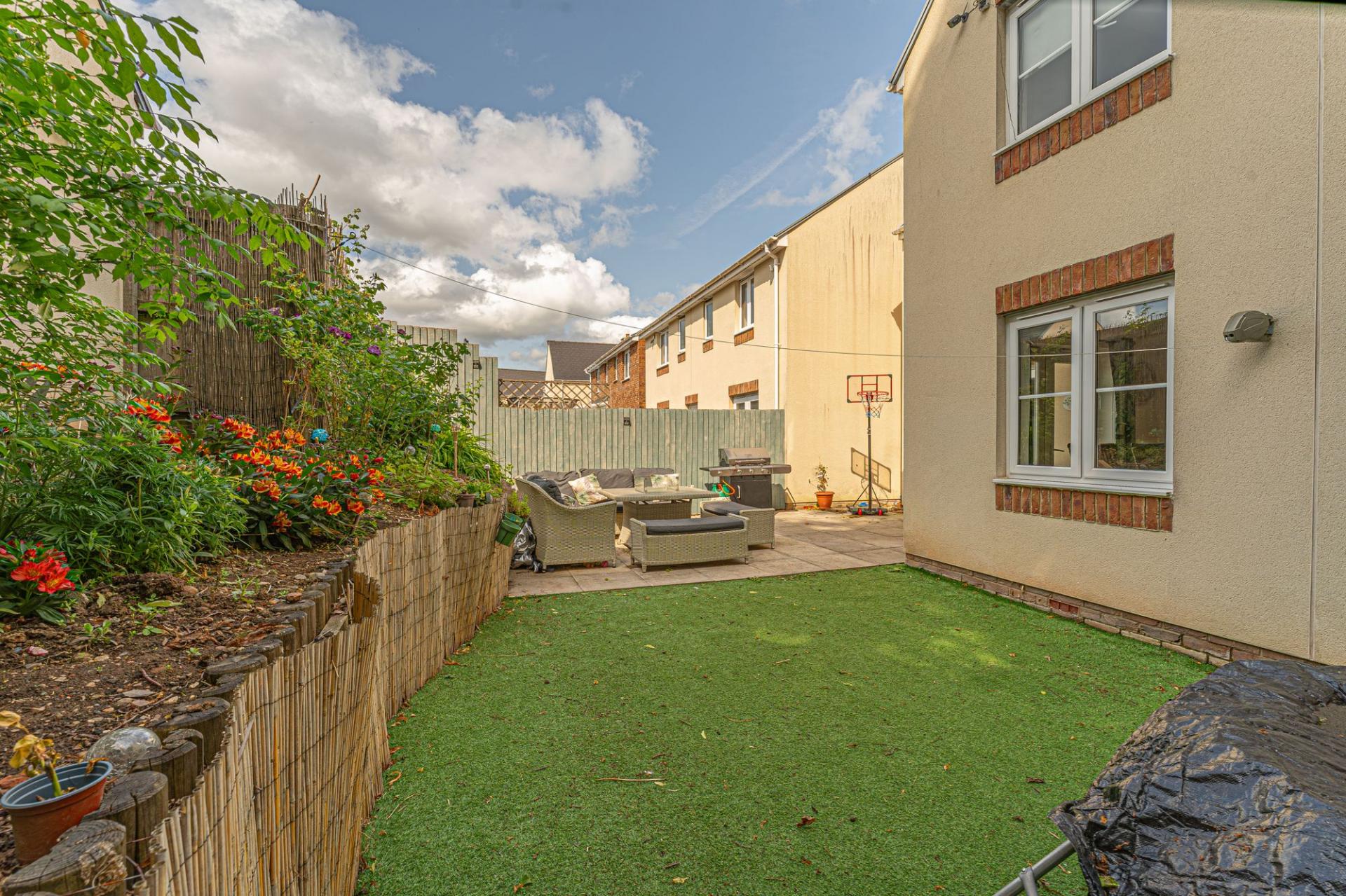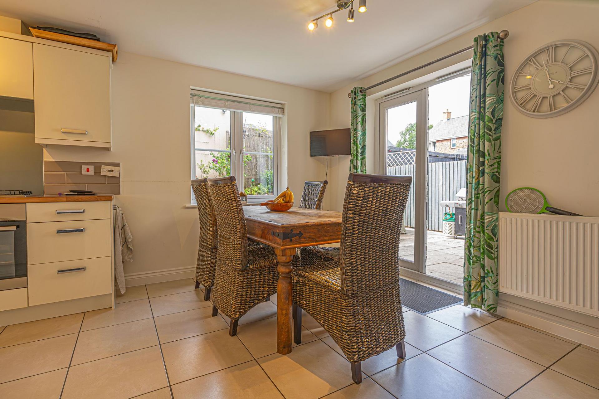 Stepping outside we can find the wonderful rear garden, which is fully enclosed and positioned on the end of the lane, enjoying a corner plot that is minimally overlooked and great for privacy. The garden itself is comprised of a blend of patio and turf lawn, ensuring a great low maintenance finish that is perfect for relaxing in the sunshine and welcoming guests for tea/coffee or dining al-fresco style. A gateway from the garden also connects to the lane behind the house, where we can find the garage and driveway, both of which can offer parking space. At the front of the house a footpath can be accessed for easy connections into the countryside, and a children’s play park found within a few minutes walk.