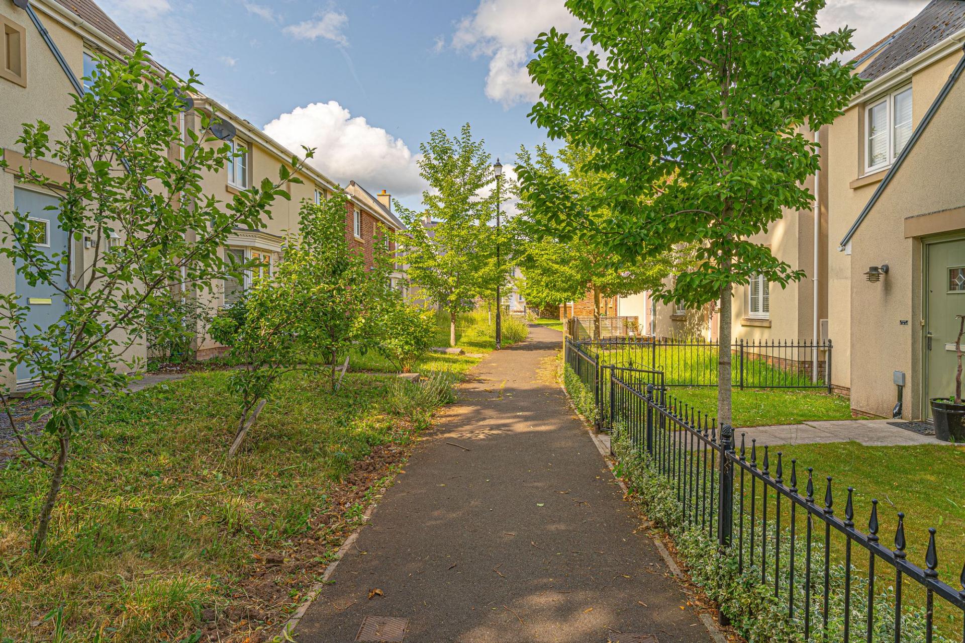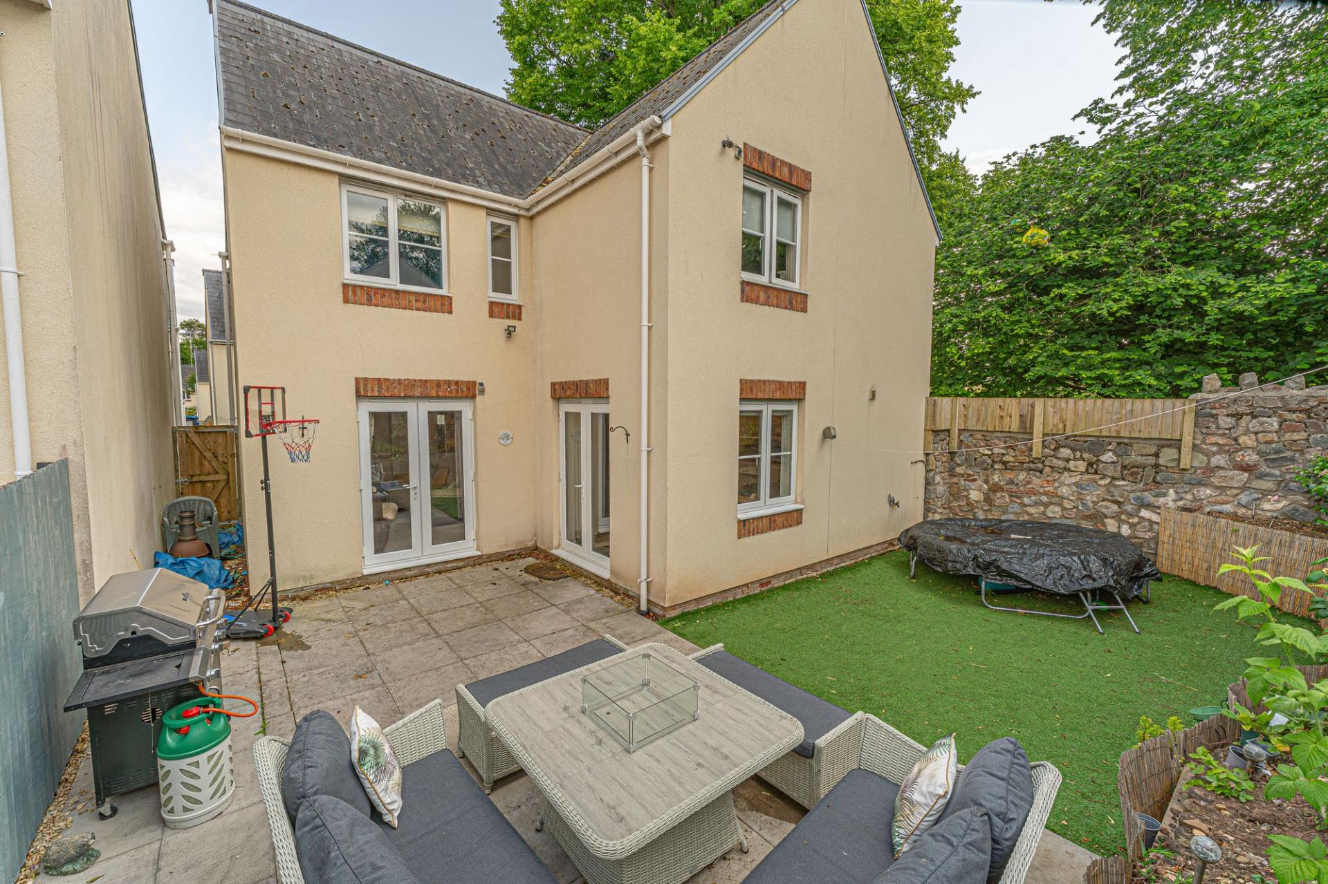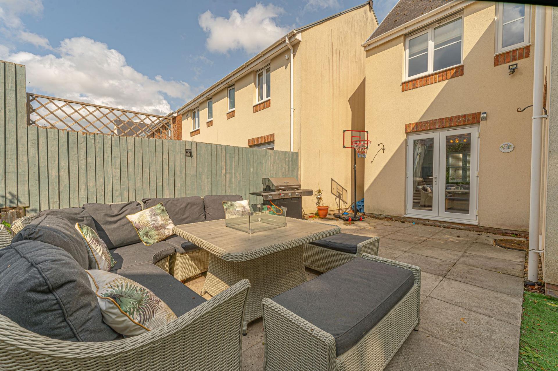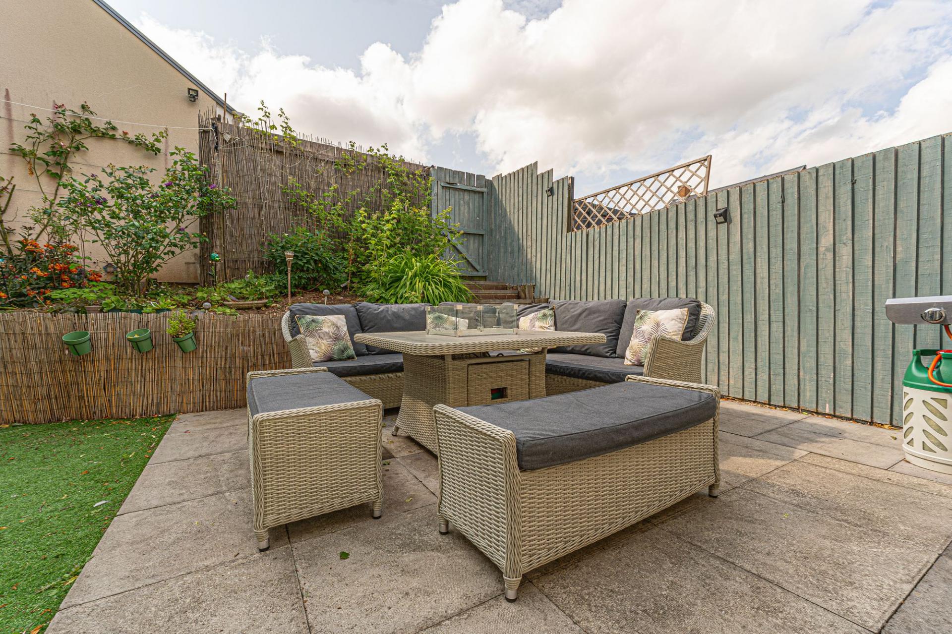 Stepping outside we can find the wonderful rear garden, which is fully enclosed and positioned on the end of the lane, enjoying a corner plot that is minimally overlooked and great for privacy. The garden itself is comprised of a blend of patio and turf lawn, ensuring a great low maintenance finish that is perfect for relaxing in the sunshine and welcoming guests for tea/coffee or dining al-fresco style. A gateway from the garden also connects to the lane behind the house, where we can find the garage and driveway, both of which can offer parking space. At the front of the house a footpath can be accessed for easy connections into the countryside, and a children’s play park found within a few minutes walk.