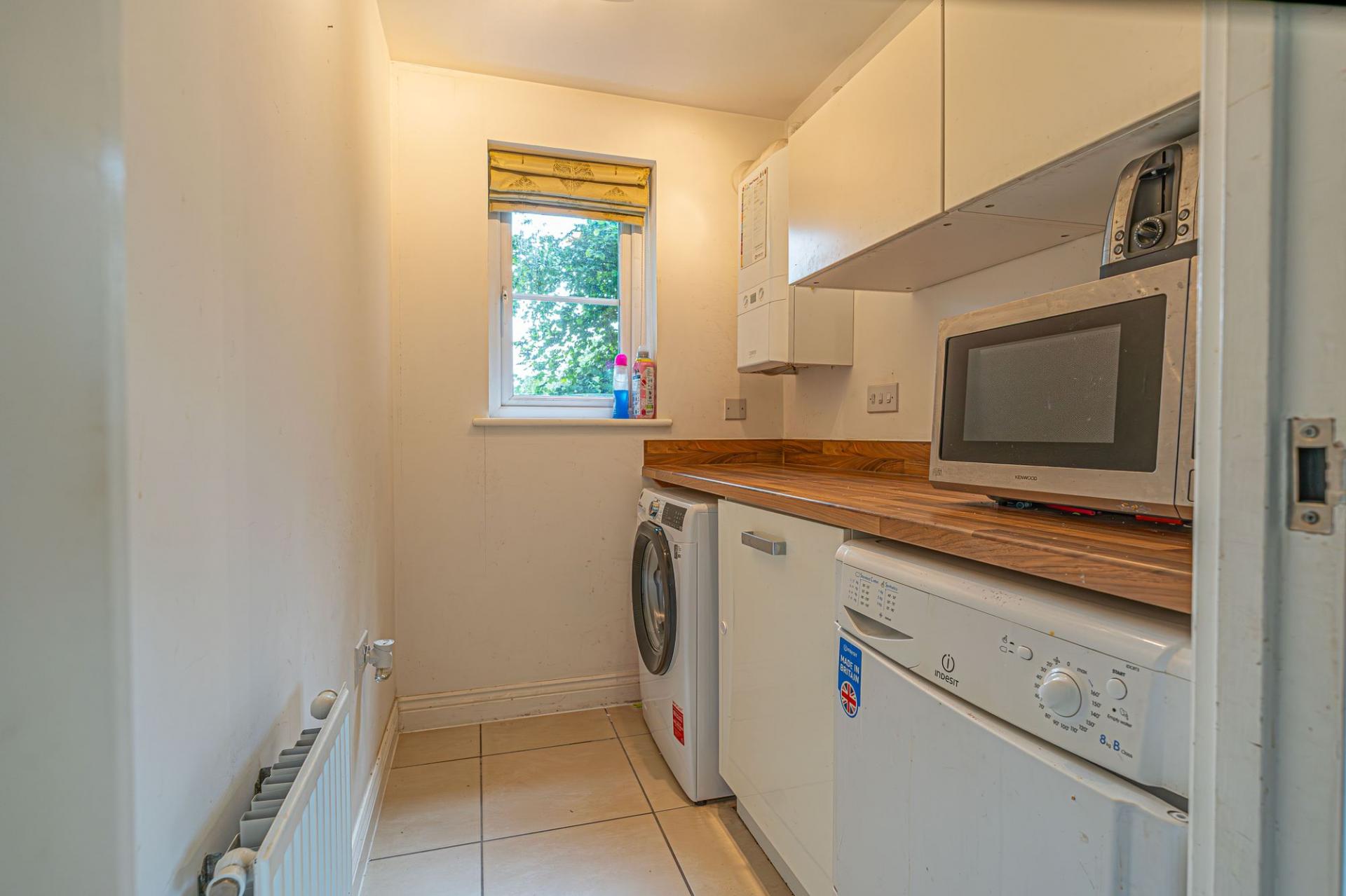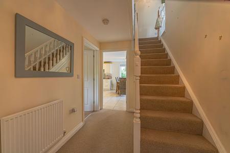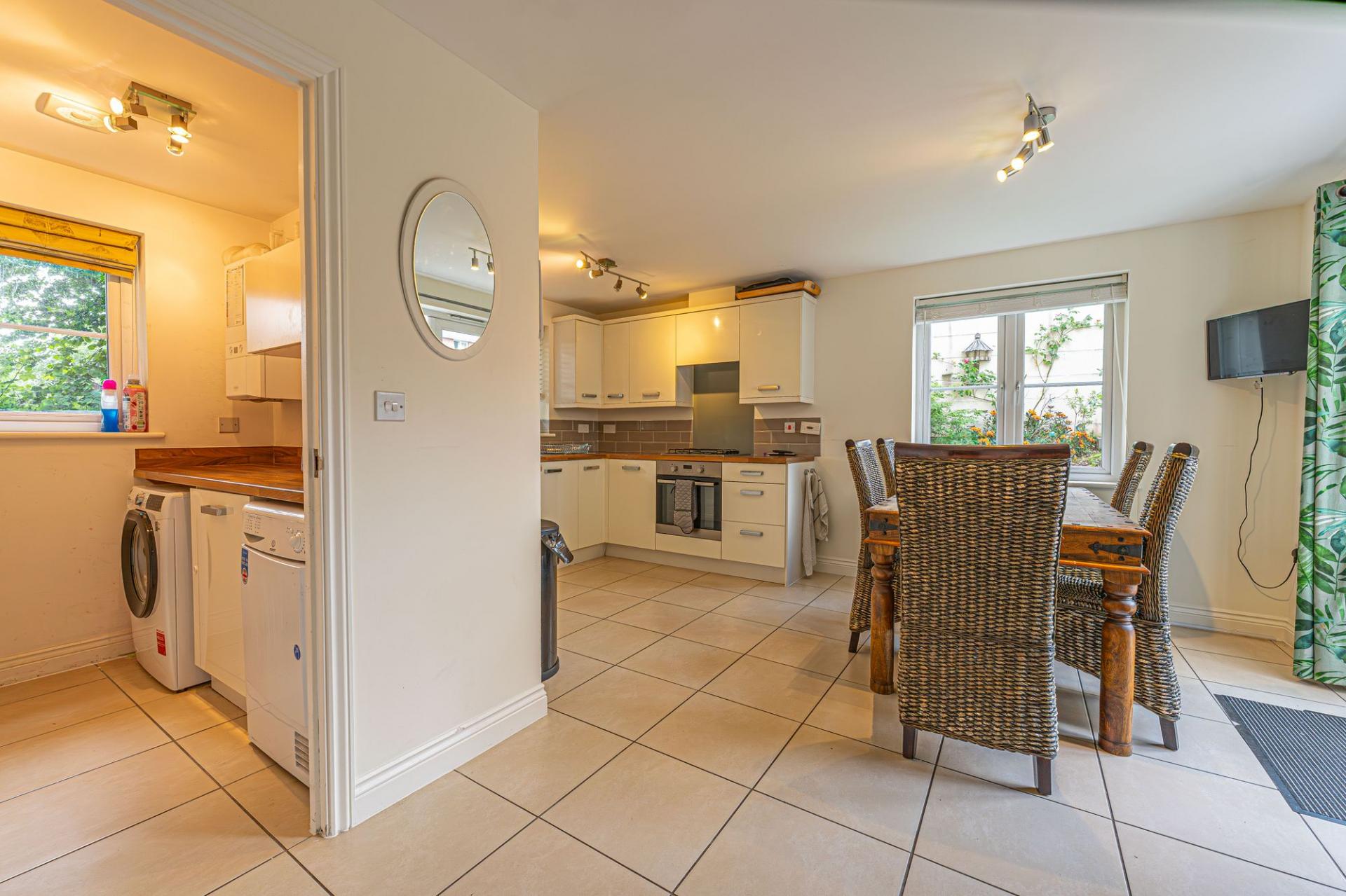 This beautifully presented family home features two spacious reception rooms from the entry hallway, offering plenty of room to relax and welcome guests with multiple furniture layouts. The first reception room is flooded by light through double doors that open out to the garden, whilst the other is currently staged as a magnificent home office, highlighting a great degree of versatility available to residents. At the rear of the house we are welcomed into the large open plan kitchen and dining room, which is also well lit by another set of French doors that open outside. The kitchen comes fitted with plenty of storage options and room for multiple appliances, as well as connecting to a helpful utility room for further storage and laundry management. A W.C can also be found from the entry hallway as well as multiple fitted cupboards.