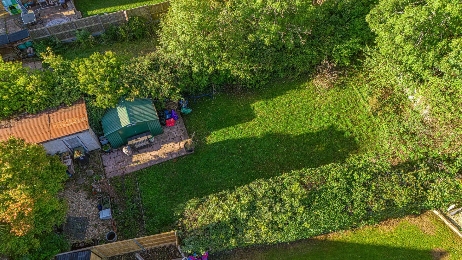 Japanese Knotweed: Present on the boundary at the bottom of the garden. The area is isolated and does not impact the lawn area, and an Invasive Plants Management Plan has been successfully implemented. Location confirmed by owner included in the attached image.