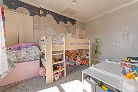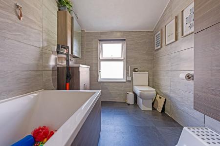 To the first floor, we have three bedrooms, two of which are well size double rooms, with fitted wardrobes for excellent storage. The third bedroom is a cosy single room, which could also be great for a home office or dressing room. The family bathroom can be found from the hallway with a toilet, bath suite and overhead shower.