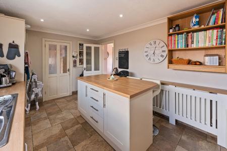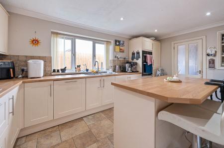 We enter this lovely family home through the front porch, which welcomes us through to the spacious living room, which connects to the dining room via an airy open plan design. This well proportioned space is bathed in natural light and is perfect for offering flexible staging options, as well as being great for entertaining guests. To the rear of the house we have the well equipped kitchen, which offers an abundance of storage options and several integrated appliances, including a marvellous kitchen island with a breakfast bar. Connected to the kitchen is the superb utility/cloakroom, which is perfect for laundry management, and opens to the W.C.