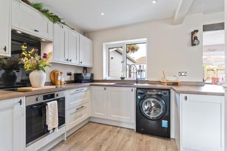 Upon entering the property, you are welcomed by a bright hallway with the staircase positioned to the left and useful storage beneath. A ground-floor WC adds to the home’s practicality. The hallway opens into the heart of the home – a fantastic open-plan family room, which has been thoughtfully designed to offer a versatile space for both relaxing and entertaining. With ample room for a range of seating and dining arrangements, this light-filled room flows seamlessly into the modern kitchen.