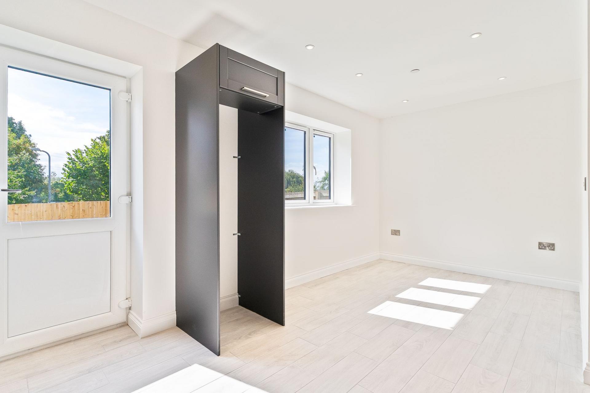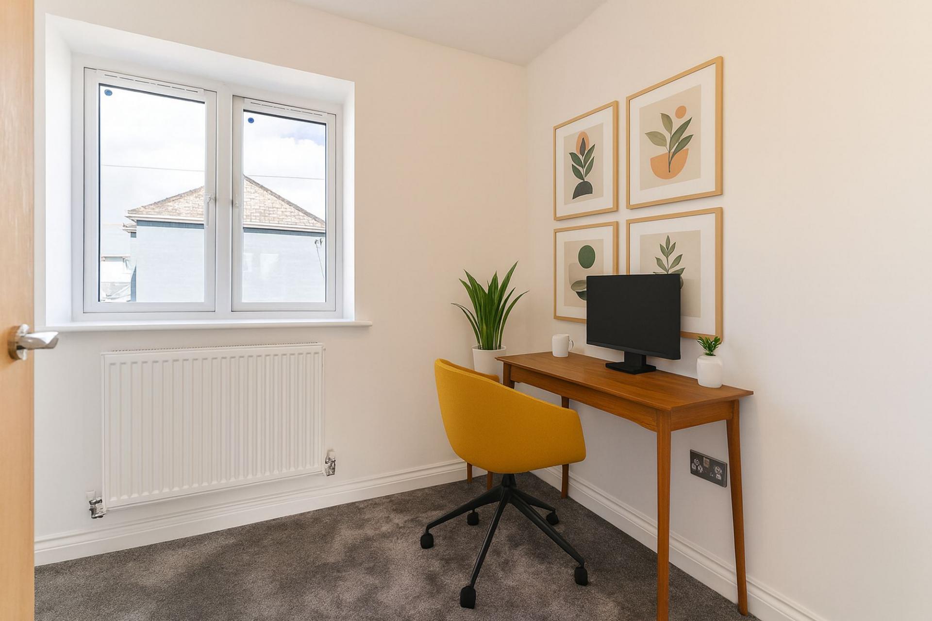 The first floor is arranged to offer three well-proportioned bedrooms. Two are generous doubles, providing ample space for furnishings, while the third is a versatile single that could also serve as a nursery, home office, or guest room. A large family bathroom completes the accommodation on this level, fitted with contemporary fixtures and finishes.