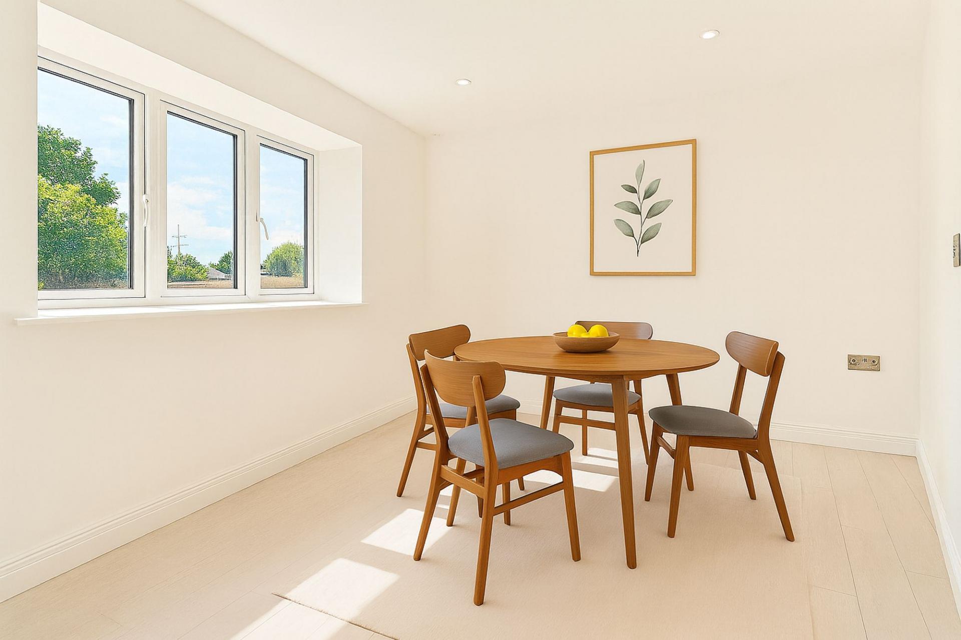 Externally, the property is enhanced by a driveway to the front, providing off-road parking for up to three vehicles. To the rear lies a fully enclosed garden, laid to lawn with an additional patio seating area, offering a safe and private space for outdoor dining, entertaining, and relaxation.
