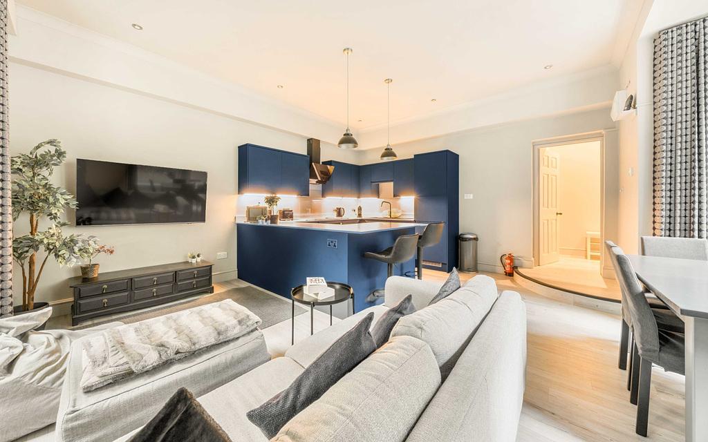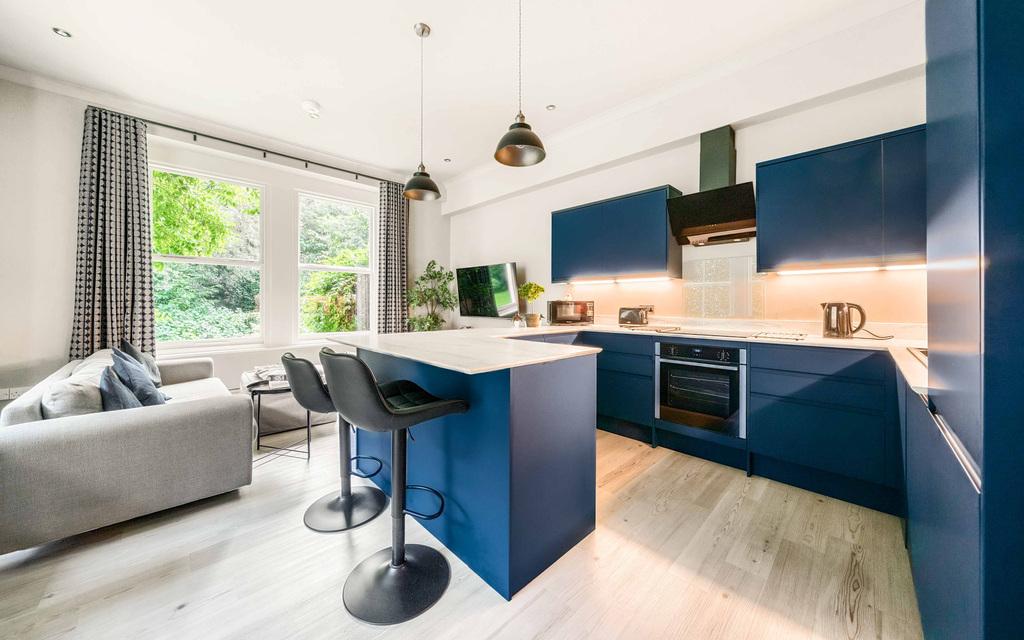 An exceptional renovation has transformed this ground floor apartment into a beautifully considered space that works perfectly as both a private retreat and a proven, high performing holiday let with strong income. At its centre is the generous kitchen, dining and living room.