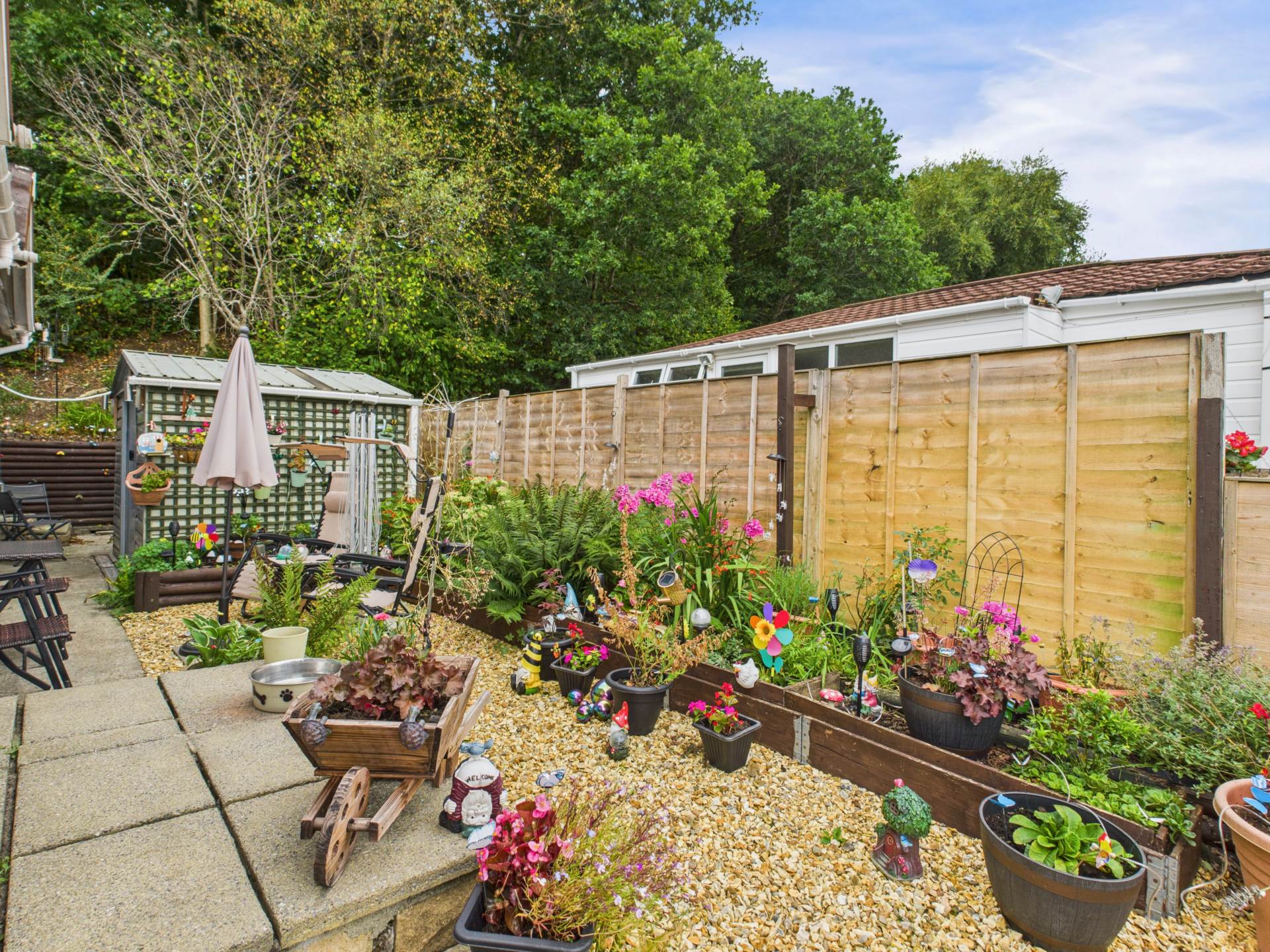 To the front there is an allocated car parking space for the property and nearby visitors parking. Attractive flower beds to either side of steps with hand rails lead up to the entrance. The gardens envelope the property and include. raised flower beds, drying area. pebble finished sections with flower and shrub beds and shed. Rear walled bank garden including flowers and shrubs. Outside taps, open fronted summer house and patio area suitable for outside dining.