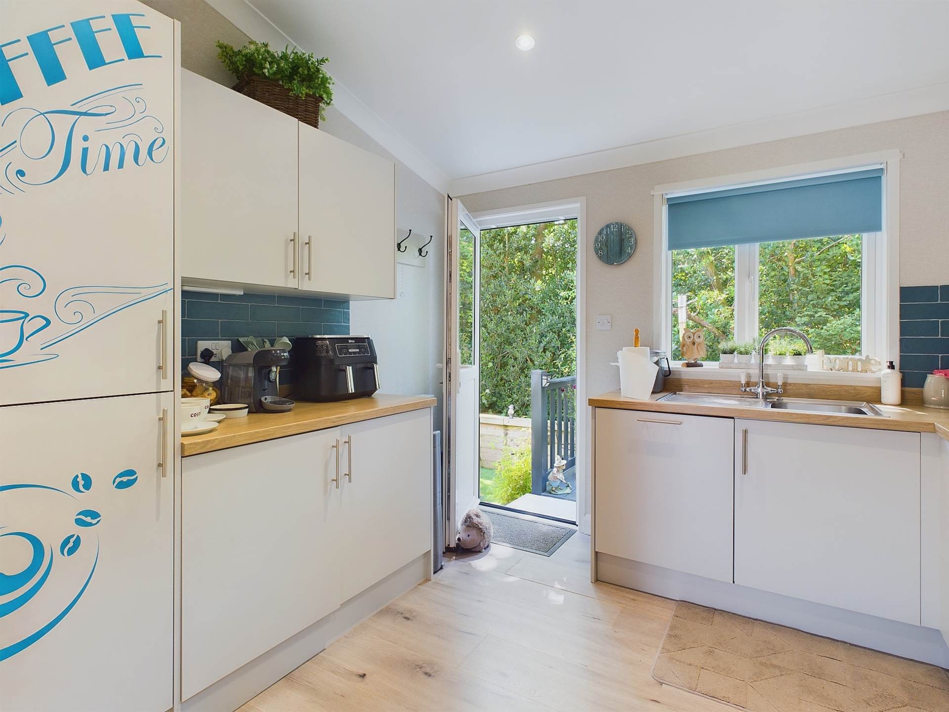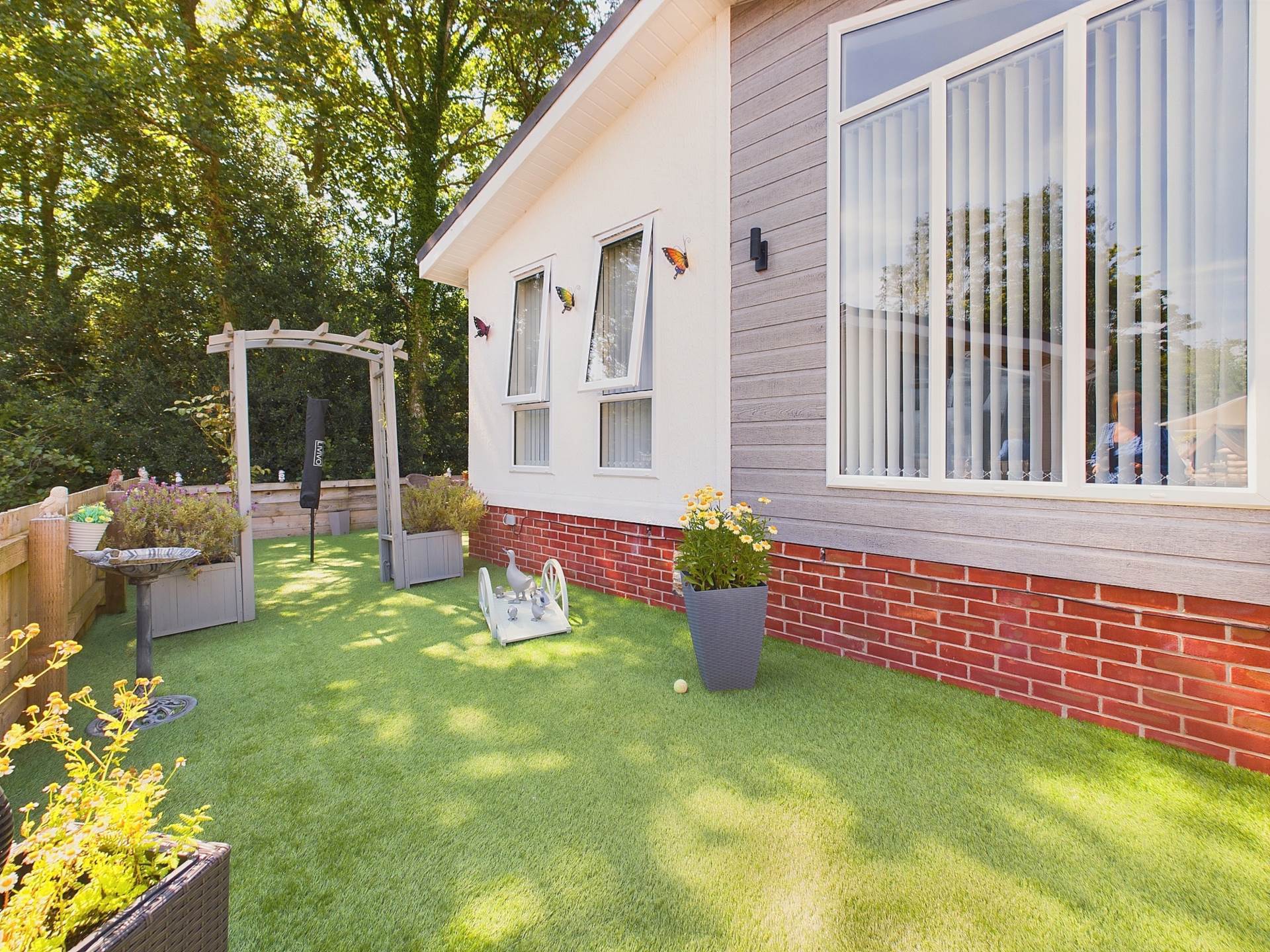 A very well presented Park Home specifically for persons over 50`s which is still covered under the guarantee and should be viewed to be appreciated. Brief accommodation comprises:- Porch, Spacious Open plan Lounge/Dining room with feature, Kitchen with built in appliances, Bedroom 1 with dressing area and En suite and modern Shower room. Outside there are attractive low maintenance Gardens which overlook a stream and woodland and include composite decked terrace ideal for alfresco dining and entertaining, artificial lawn sections, seating areas and also include two useful sheds. There is parking for one vehicle and visitors parking. LPG gas central heating and uPVC double glazing. The property and especially the terrace to the rear enjoy a pleasant outlook across to woodland and a stream.